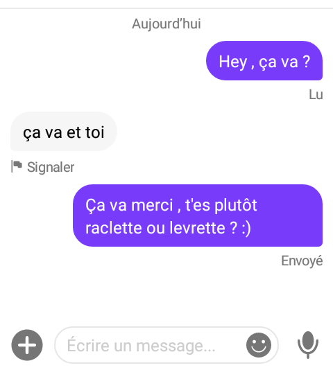 Le 08 février 2021 à 22:55:43 Mochi a écrit :Pas de majuscule, pas de point d'interrogation100% elle a pas 18 ans et a faussé son âge pour être sur badoo