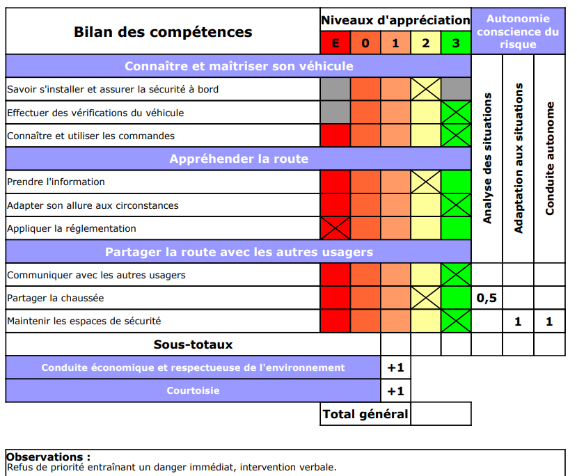 Le parcours ne présentait aucune "priorité" et aucune "intervention verbale" de l'examinateur n'a été faite