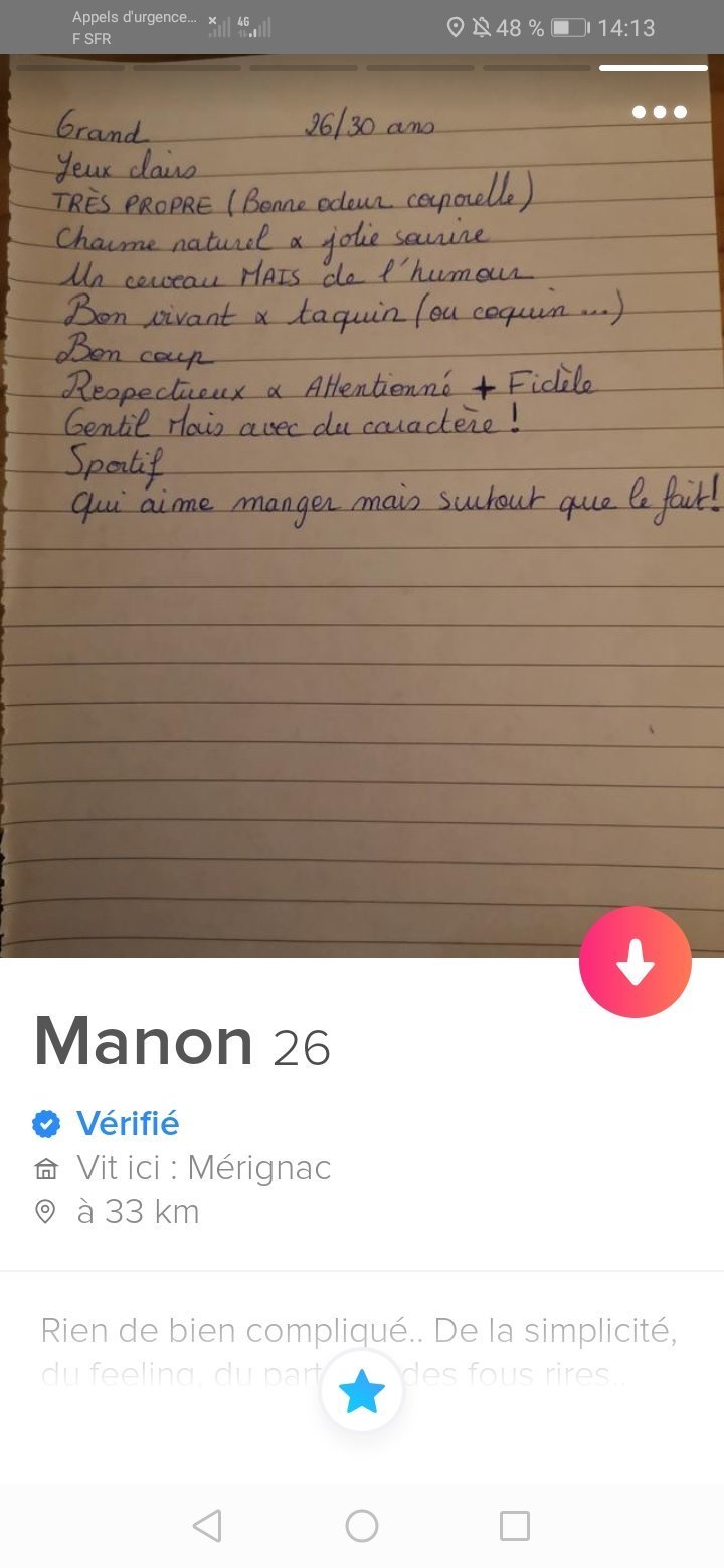 Ce que je comprends pas c'est que c'est littéralement la description de l'homme parfait. Alors pourquoi en faire une description ? Je me doute bien qu'un vieux pervers édenté avec un oeil de verre et un menton fuyant, ce ne serait pas son premier choix.