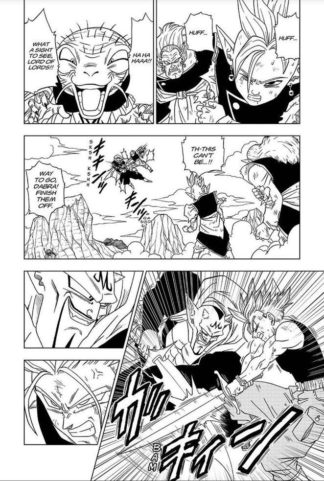 en sachant que dabra crache sur l'épée sacré qui tombe au sol et se brise et tue sans le savoir le vieux kaioshins dedans)