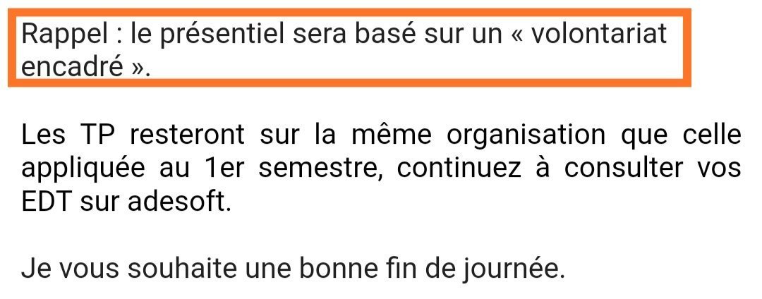 C'est marqué que les cours en présentiel sont basés sur un "volontariat encadré", ça veut dire que je suis obligé d'être en présentiel ? Parce que flemme de me lever tôt le matin si je peux suivre les cours en distanciel