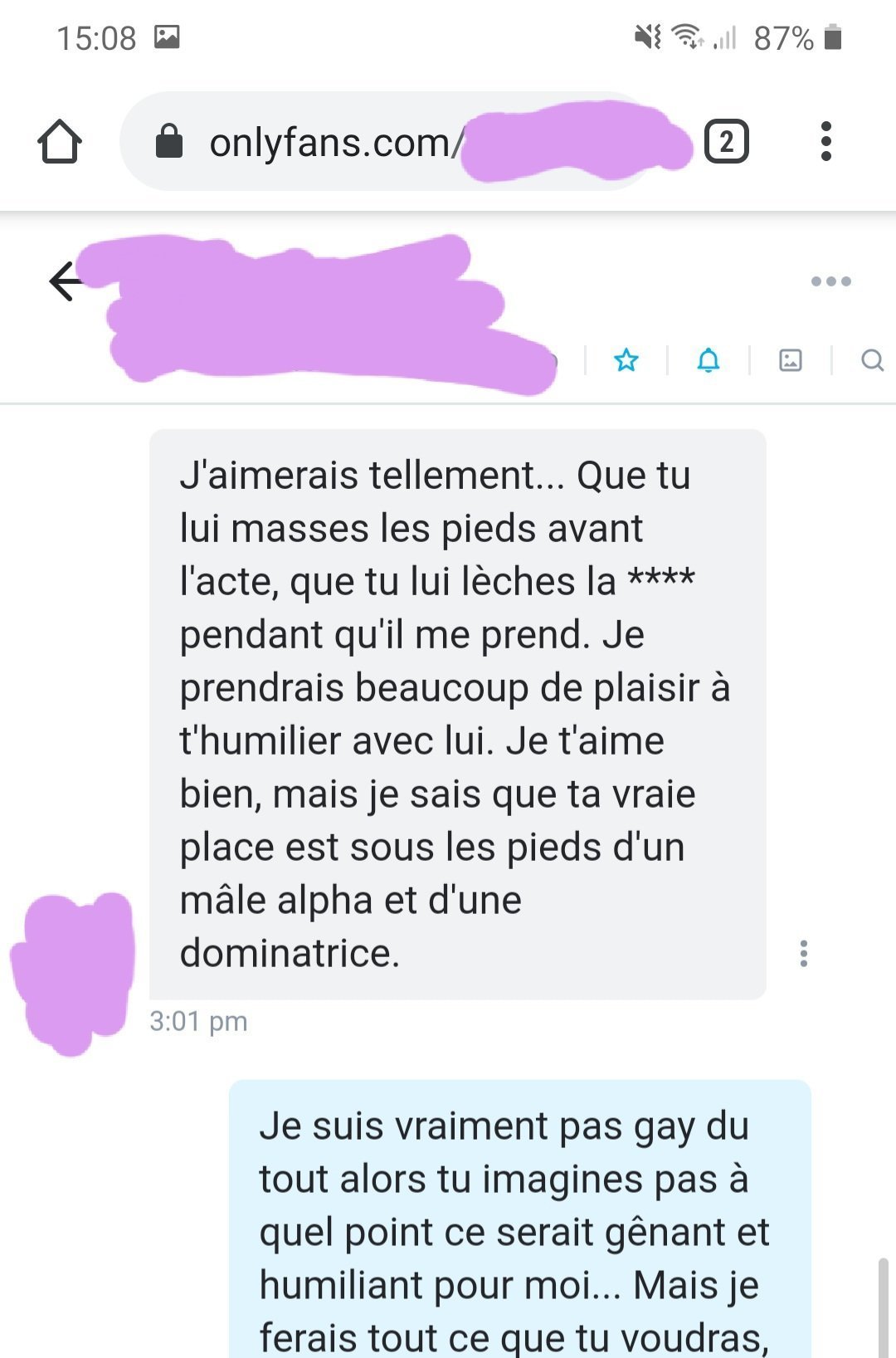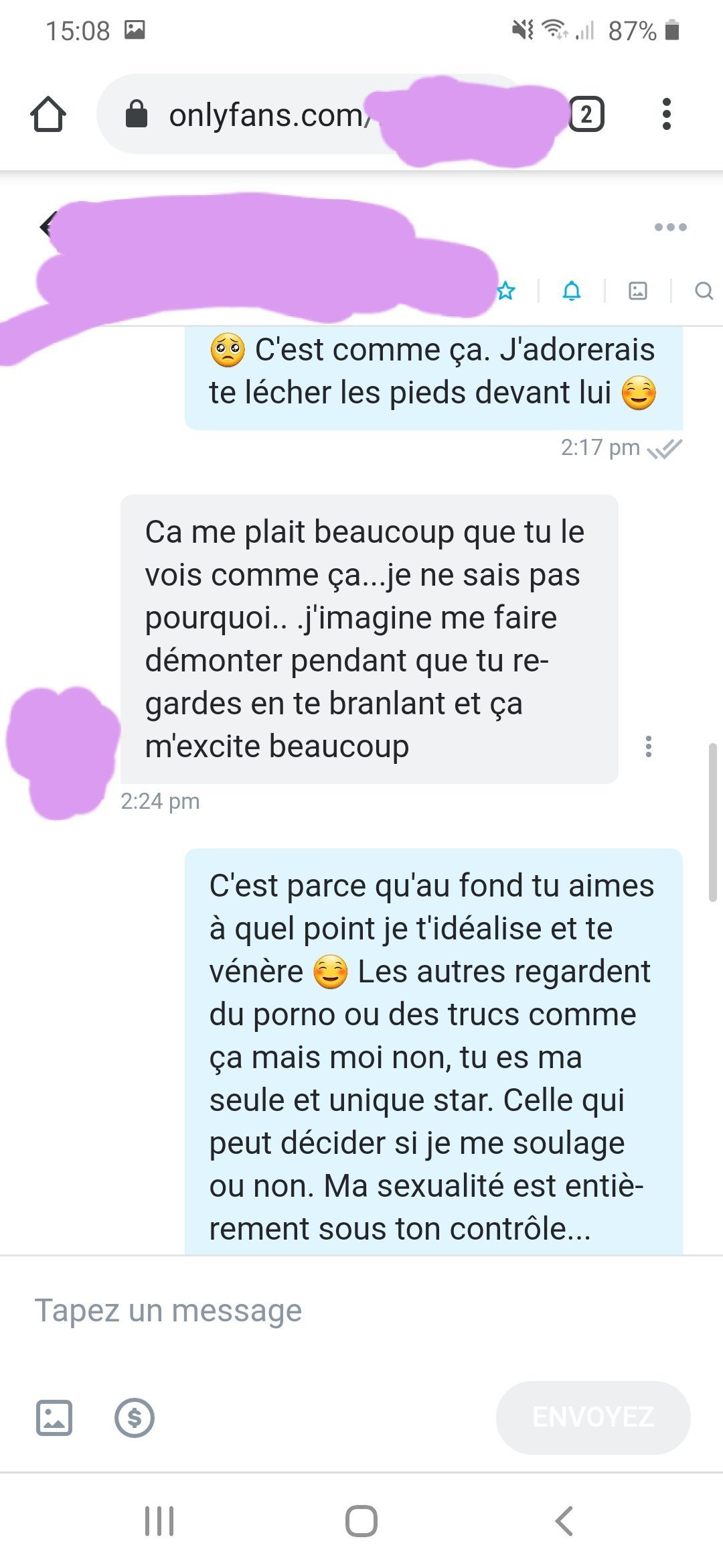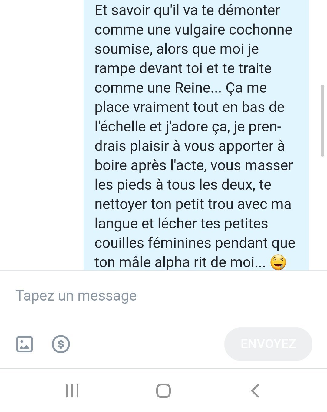 Puceau à 27 ans, 4/10 prolo de province, je suis réellement amoureux d'une fille trans parisienne 8/10, et complètement soumis. Ça m'excite d'être dominé par une bourgeoise parisienne Je paye littéralement (onlyfans) pour qu'elle puisse sortir et se faire baiser par des BG supérieurs à moi. Notre relation est sincère elle a seulement 4-5 abonnés.