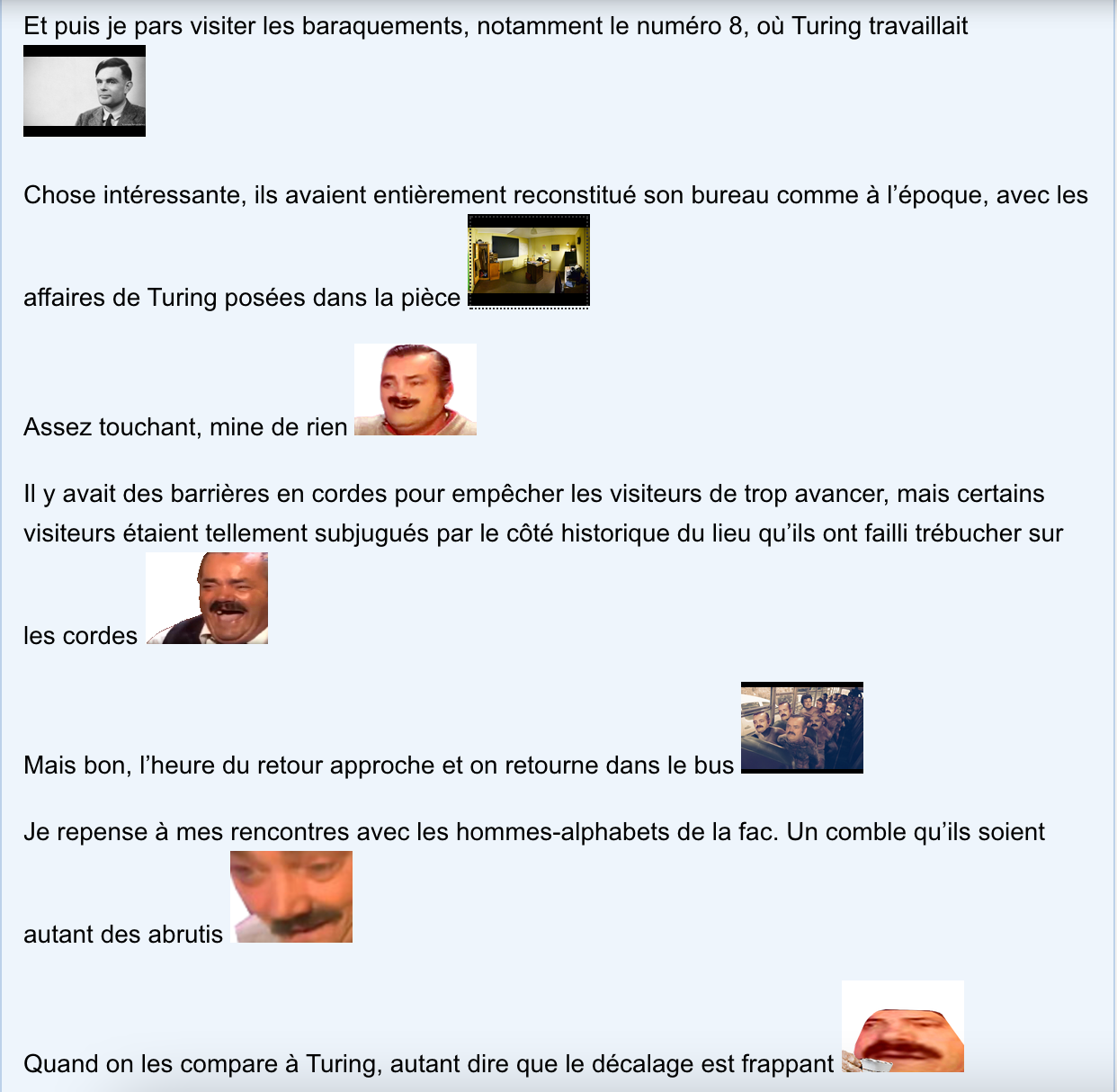 Et puis je pars visiter les baraquements, notamment le numéro 8, où Turing travaillait
