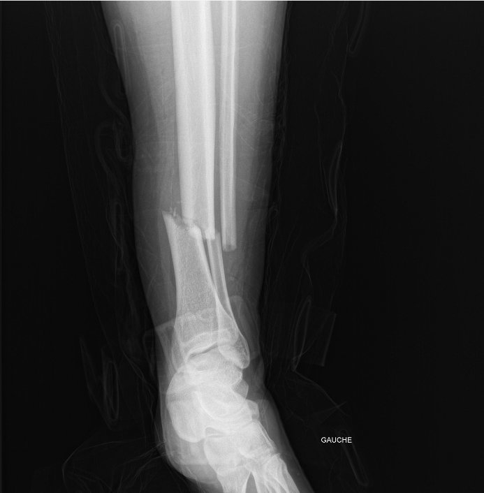 Accident en moto à la con, j'ai mal négocié un virage en descente et j'ai freiné trop fort, j'ai basculé par dessus la moto et elle m'a écrasé la jambe.