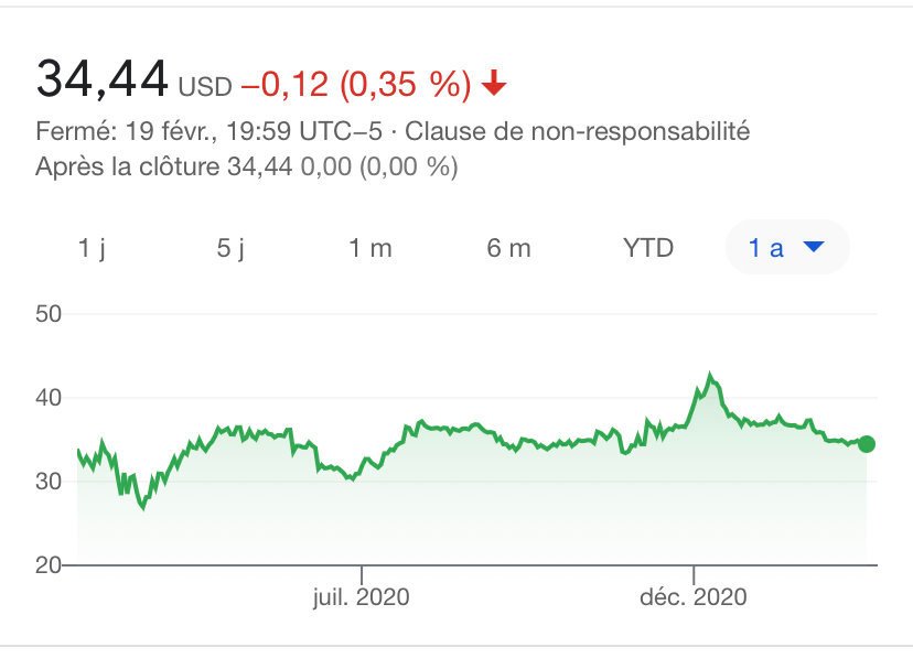 Elle a déjà pris 20% tu veux quoi de plus ?elle valait 40 dollars avant la pandémie