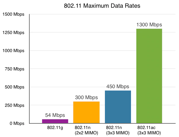 le 802.11ac permet de faire 1,3gigabit. J'en ai que 0,15 ...et ? cela dépend surtout de ton équipement, donc un bon routeur wifi 6, et une bonne carte wifi 6, sans oublié que la distance influe énormement, oui a 1métres tu peut faire du 1,3gb/s, mais a 10 - 15 mètres tu peut déja divisé par deux.
