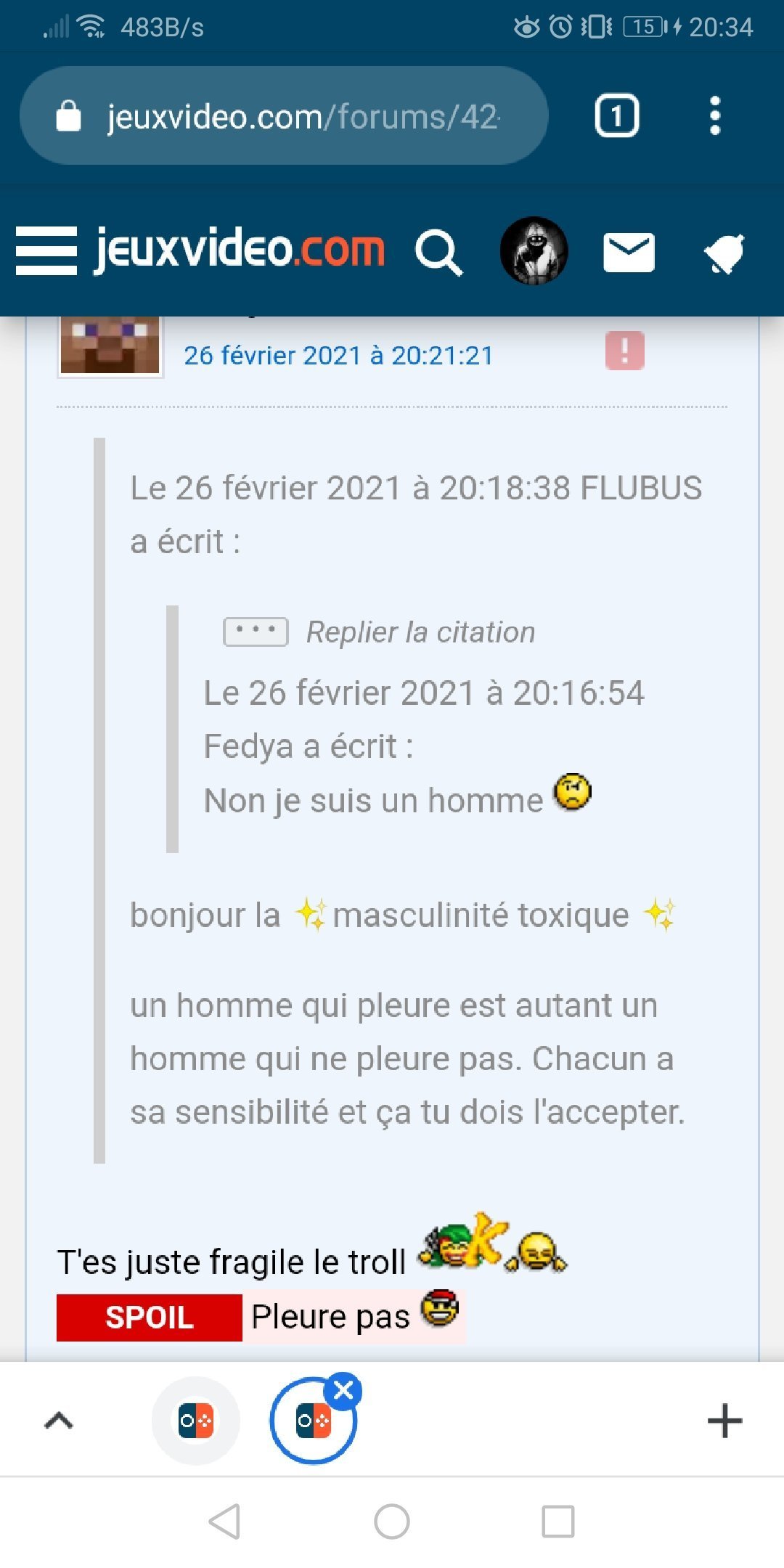 Sur le topic où il dit pleurer à cause du forum