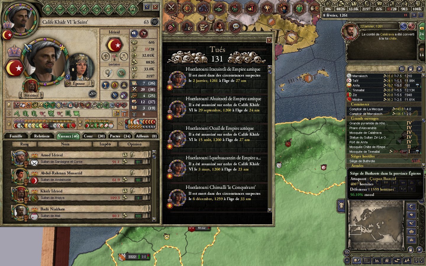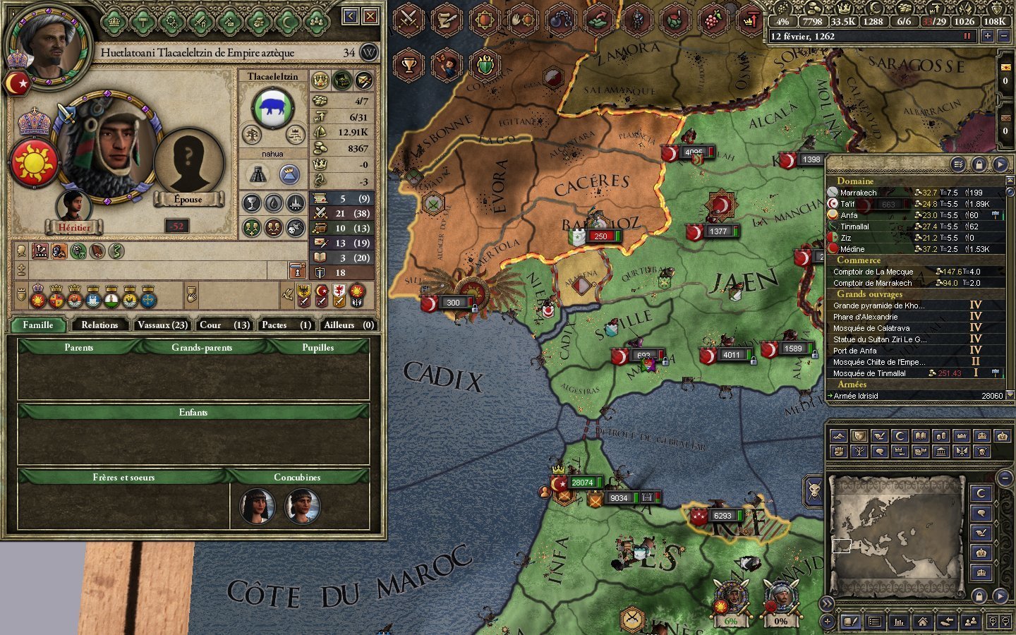 je controle toute l'afrique et une partie du moyen orient avec les lieux saints , l`italie et les balkans jusqu'á Vienne