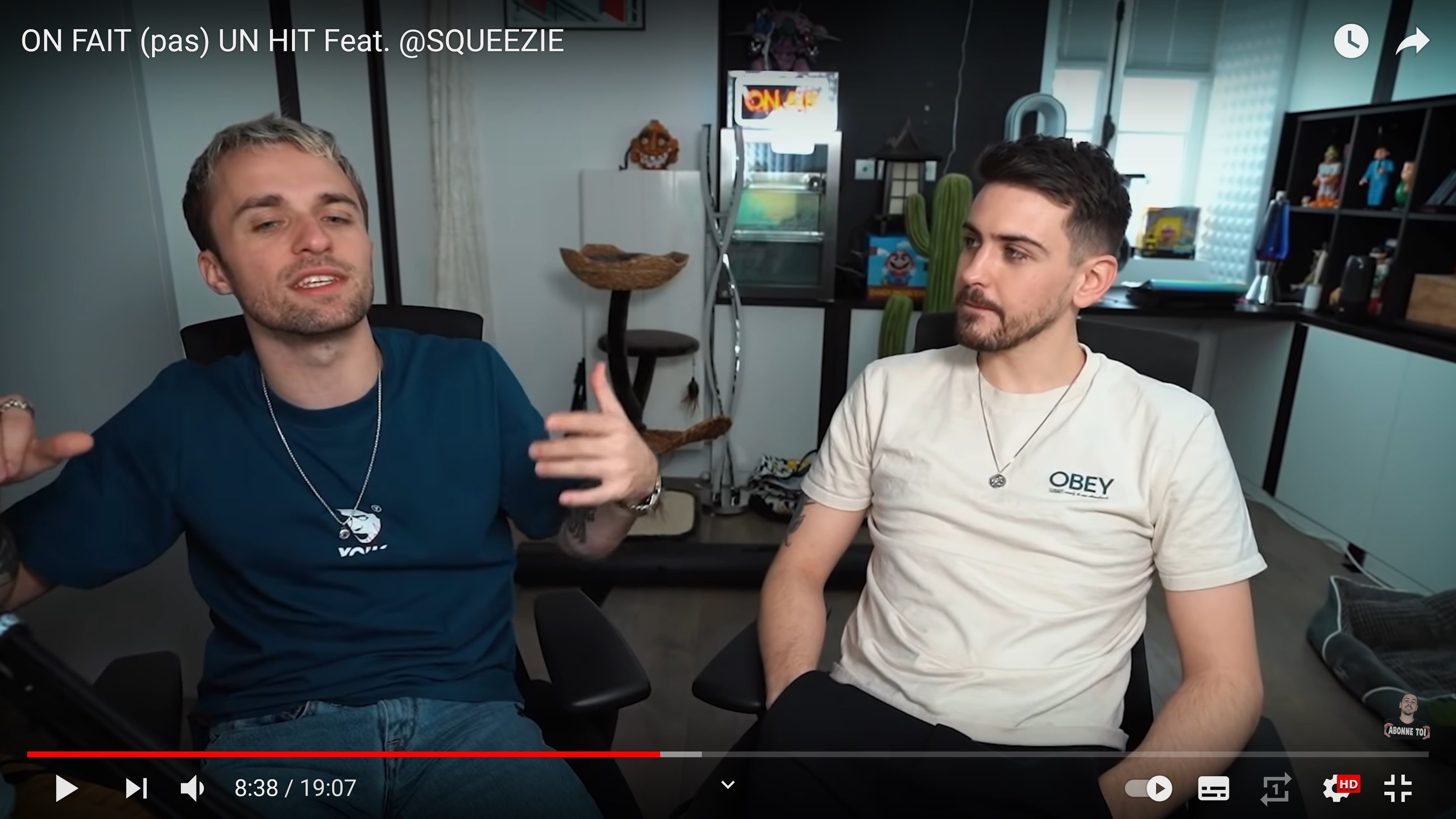pendant que squeezie a jamais ete vraiment beau gosse de visage (bouche disproportionné par exemple) mais en plus il est mal rasé il a foiré sa coupe (trop cour sur les coté +trop long au dessus) qui n'ont aucun traitement/volume et les cheveux qui retombent sur une grande calv ca grossis la tete... du coup t'as un 5/10 avec une coupe qui lui fait une tete à la jimmy neutron qui l'emmene en 3/10