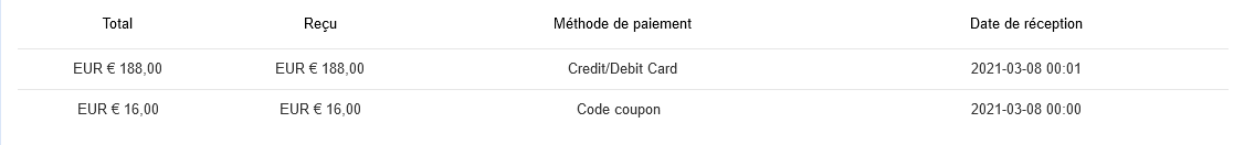 pourquoi c'est marqué commande 204 alors que payé 188 ?