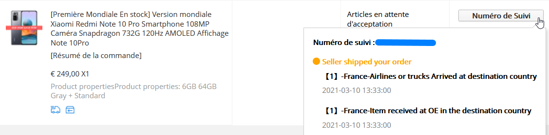 Si tu veut un suivit un peu plus précis, faut aller dans tes commandes aliexpress