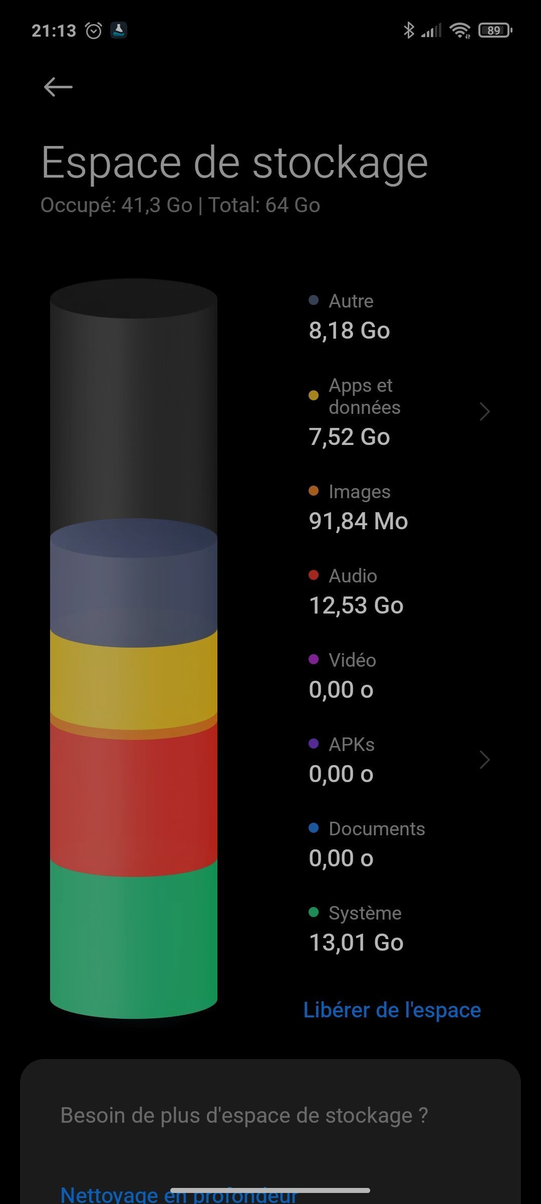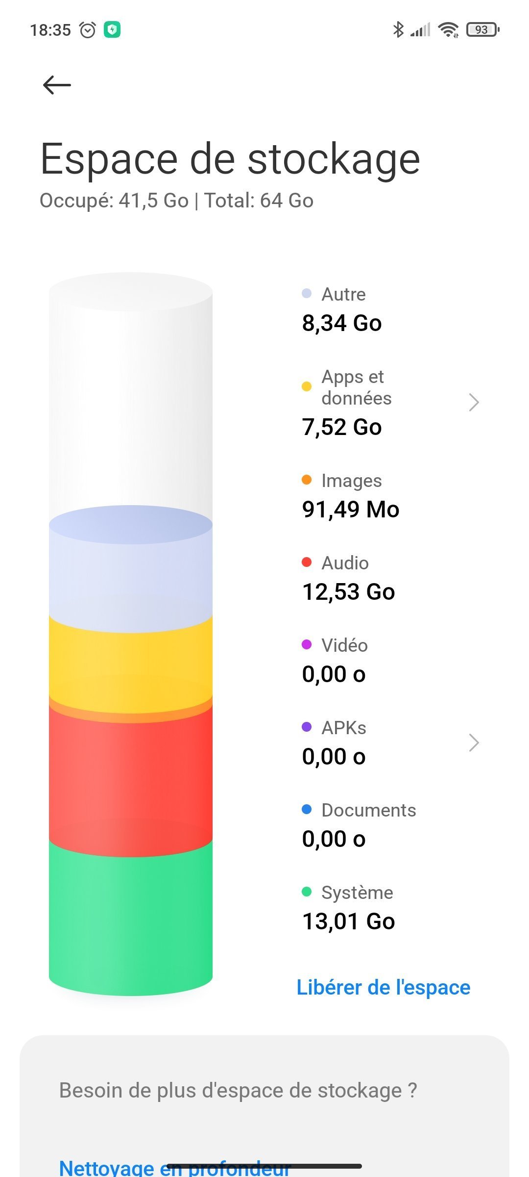 J'ai cherché l'origine des 8Go de "autres" et j'ai rien trouvé, selon les applis tierce j'ai 51Go de stockage et 22 de libre, et donc selon MIUI j'ai 64Go avec 22 de libre