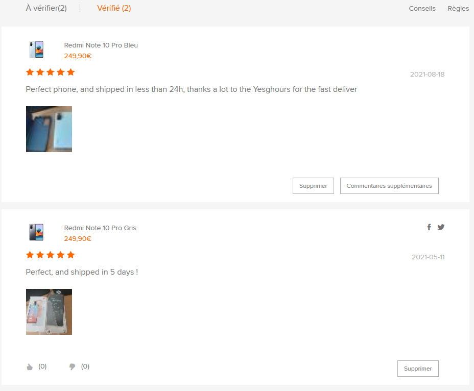 J'arrive pas à laisser de commentaire/review pour le 2ème RN10P acheté hier?