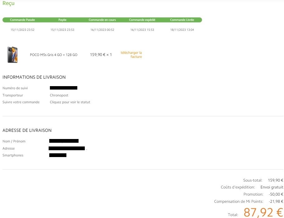Xiaomi Poco M5s 4 Go / 128 Go 4G à 87,92€ neuf, frais de port inclus, livré et garantie française 2 ans, commandé sur https://www.mi.com ici https://i.imgur.com/ZZLK5J1.jpeg