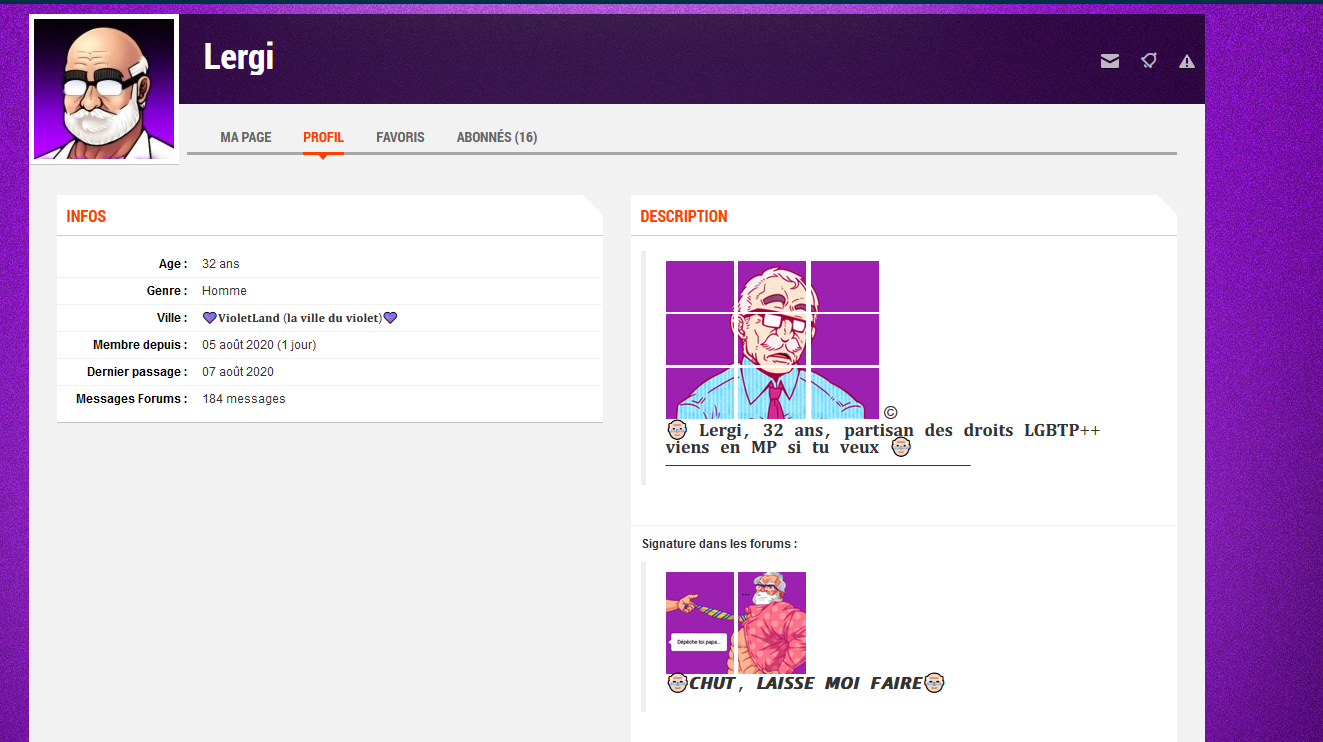 Erdyn : https://www.jeuxvideo.com/profil/erdyn?mode=infos Et vu que ce de Bertrand a mis son compte en privé, un petit screen pour vous donner une idée : https://imgur.com/a/vYEOrk3
