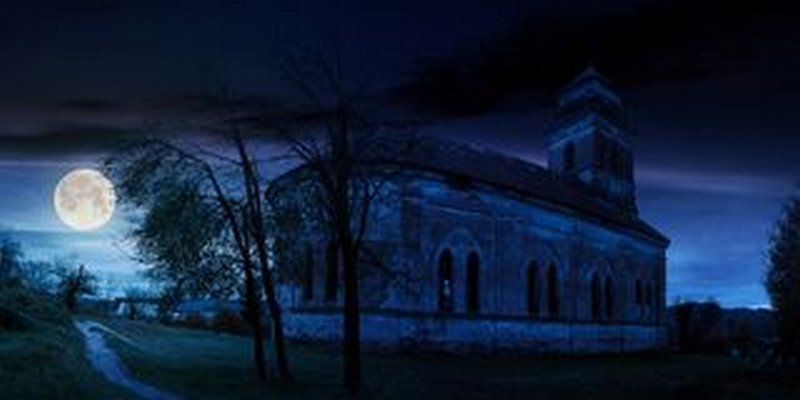 après une journée de marche intense vous atterrissez la nuit en pleine lune devant une église