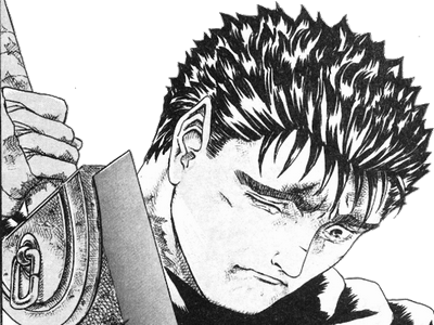 Guts est un personnage bien plus profond qu'il n'y parait, ne voir en lui qu'une personne trop dark est une lourde erreur, il suffit d'écouter son theme pour bien comprendre qui il est https://www.youtube.com/watch?v=f26KyGr6y8w