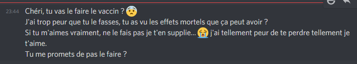 [23:52:47] <grrrpaw>Le 06 mars 2021 à 23:49:50 Franlix a écrit :Elle a surtout l'air influencable si no fake Elle a du tomber sur une vidéo de complotiste à 200 vues sur Youtube Elle est platiste aussi