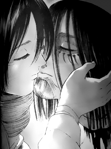 8- Mikasa la nécrophile décapite la tête d'eren dans le titan, embrasse la bouche d'un décapité.