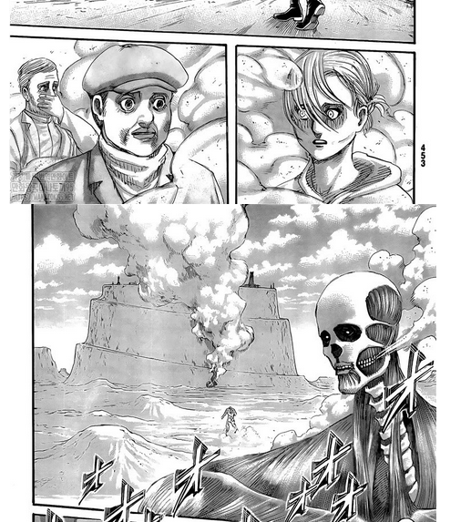 Bordel notre seul et unique échappatoire maintenant que nous avons confirmation c'est ce que je répète depuis quelques pages, que le rumbling de Eren ait été présent partout et ait fait suffisamment de bordel pour assurer la suprématie de Paradis sans pour autant avoir génocider tout le monde.