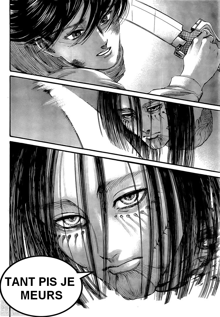 Pour ceux qui se demande ce qu’eren dit : https://ww7.readsnk.com/chapter/shingeki-no-kyojin-spoilers-raw-chapter-138/