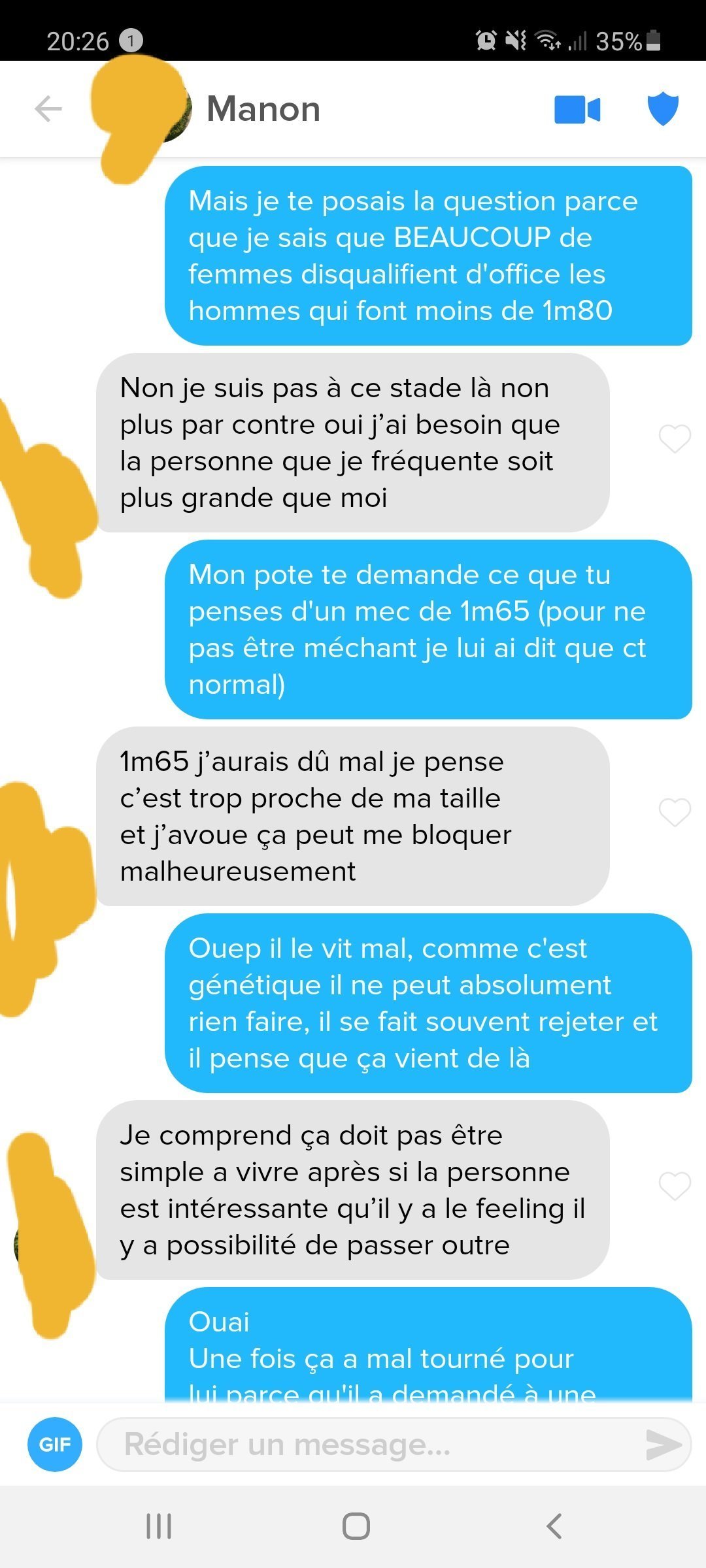 Bah la réalité c'est qu'un de mes meilleur potes qui fait 1m65 a déjà eu 3 copines
