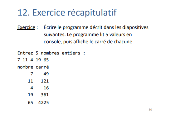 printf("%d\t%d\n", nombres[i], carre(nombres[i]));