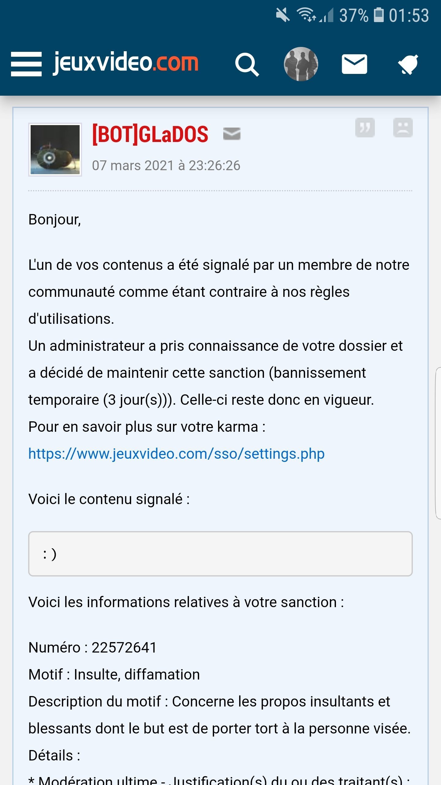 Le 08 mars 2021 à 02:28:50 Warqer a écrit :Banni 30 jours pédopornographie pour un truc qui a aucun rapport
