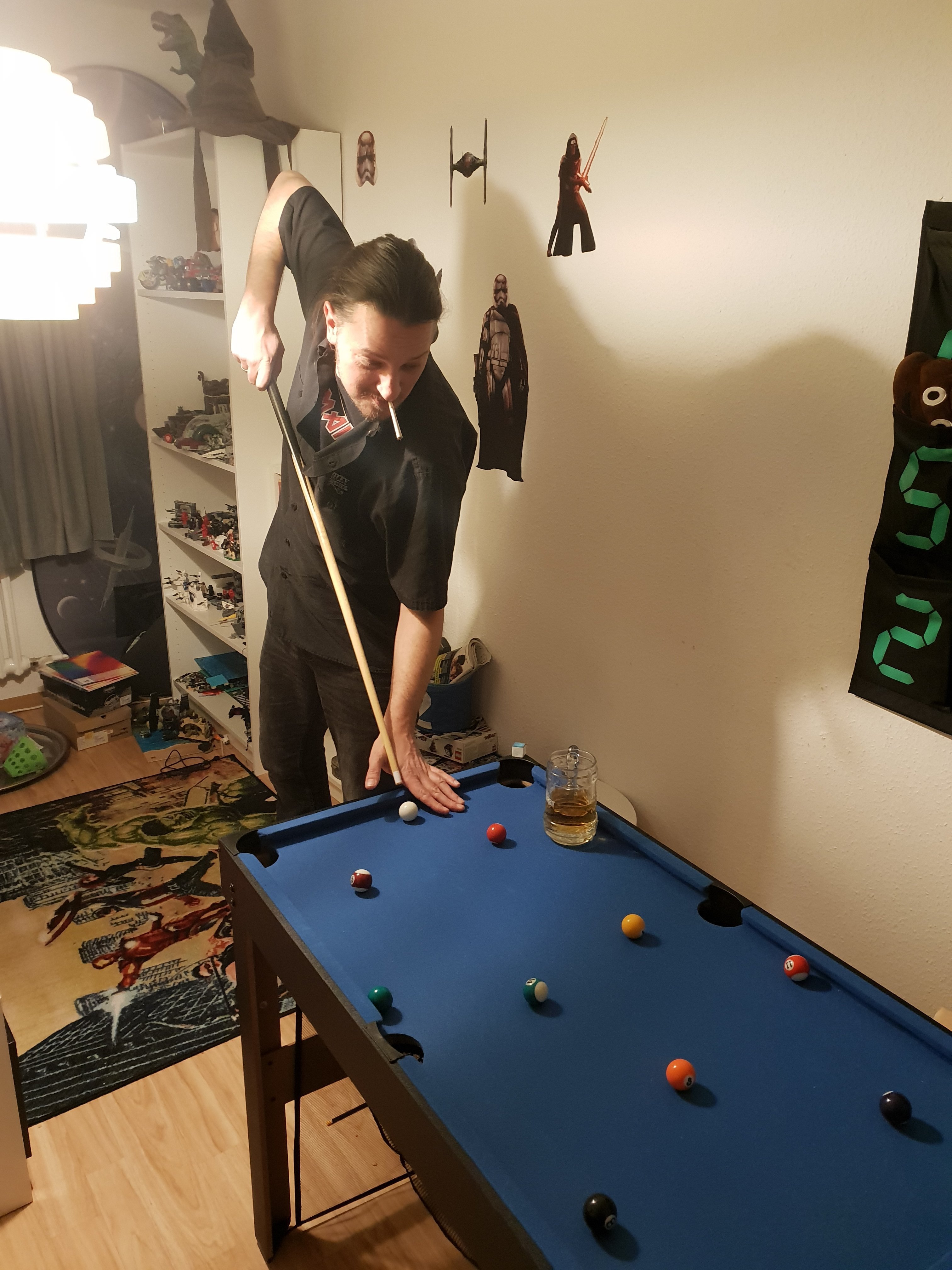 Pour être honnête c'etait juste pour la photo, c'était le cadeau de noël du gamin, tu peux rajouter des tables dessus avec baby foot air hockey etc. La table est cool mais les queues de billard sont à chier. Si tu joues normalement tu les exploses en une partie.