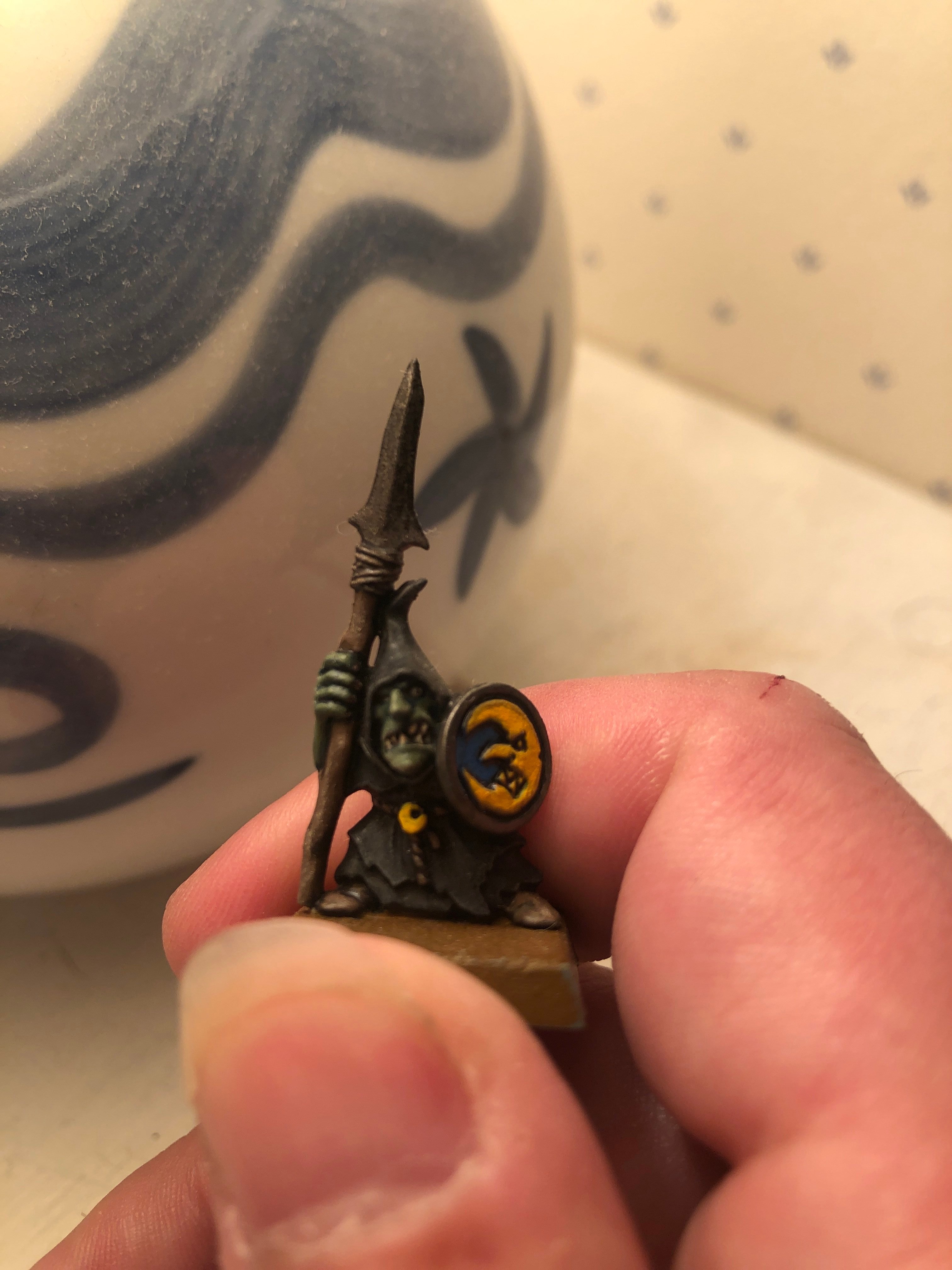 Un lancier gobelin, j'ai comme projet de faire une armée de gloomspite gitz ou gobelins en gardant ce schéma un peu champignon. (j'en ai déjà 4 j'avance doucement ahiii)