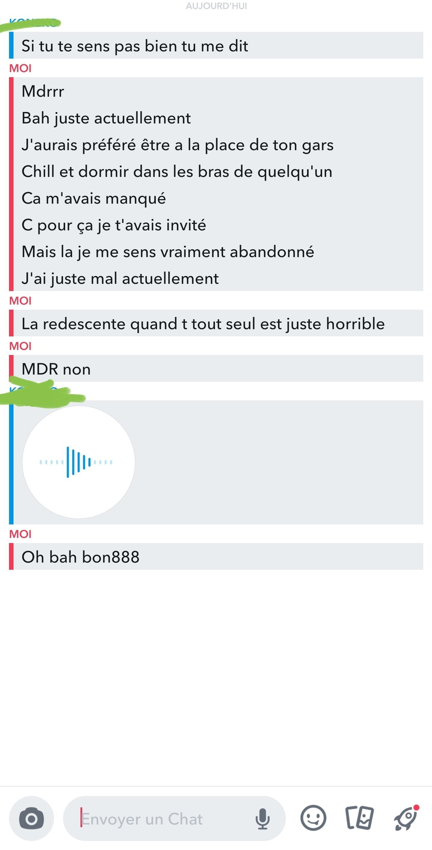 Moi je suis crédule pour le coup, elle disait quoi dans le vocal ?Profite de ton état pour te calmer avec eux et cockblock le, tu as le droit si c'est chez toi