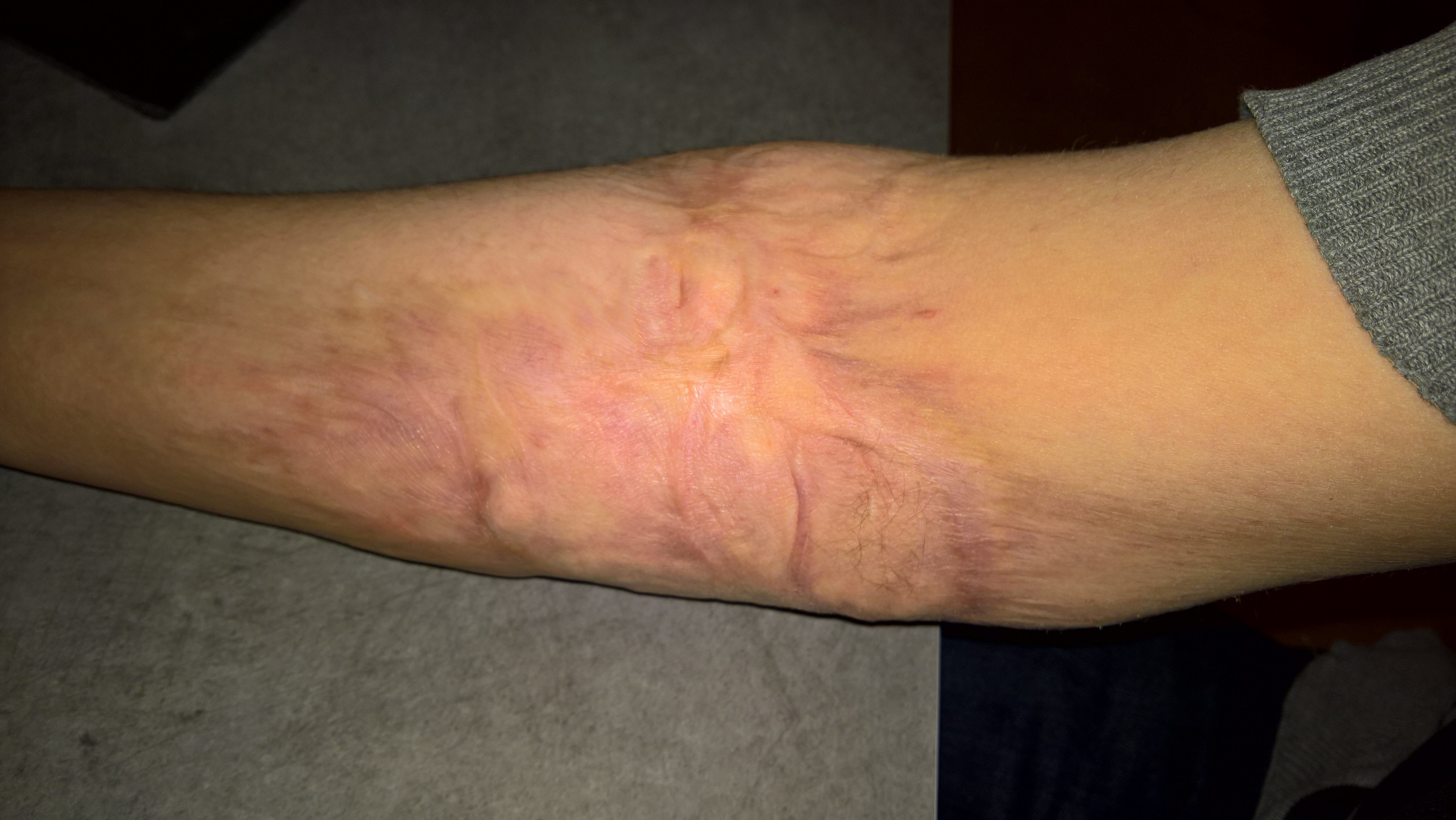 Je ne sais pas si tu vas considérer cela comme une cicatrice ou une blessure mais j'ai personnellement une brulure qui me prend une bonne partie du bras droit, et qui a comme sympathique obligation de ne pas être exposé au soleil sous peine de risqué un cancer de la peau![]()
