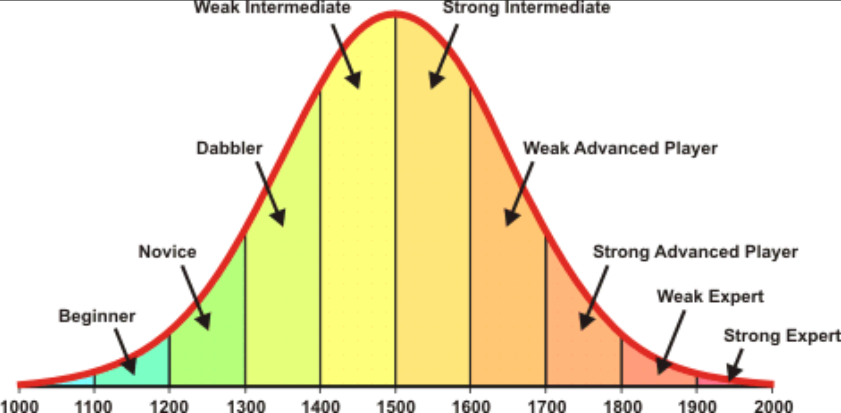 Je ne pense pas que le nombre de parties soit si important que ça, je vois mal un joueur atteindre un excellent Elo sans avoir jamais joué ou presque mais si tu joues chacune de tes parties en étant déconcentré, en écoutant la télévision ou quelque chose en fond sonore et sans trop regarder le plateau comme la plupart des gens le font je pense, tu peux sans doute atteindre les 12 000 Parties en restant à un Elo objectivement très faible. Peut être que c'est un problème de concentration sur le jeu je ne vois pas d'autres explications