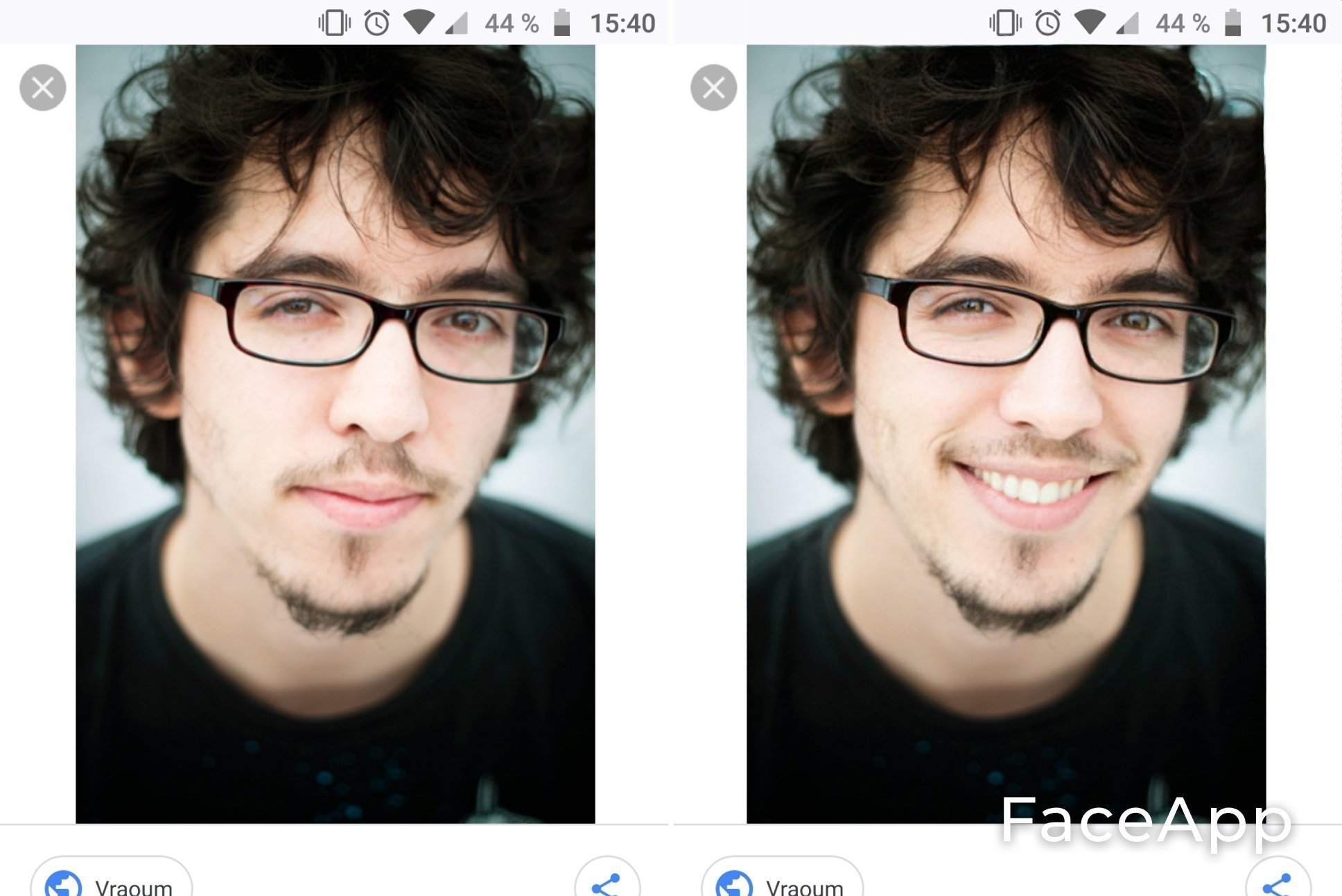Le filtre accessible gratuitement gratuit "sourire + film" de Faceapp fait gagner 1 point sur 10