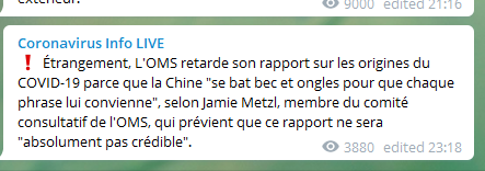 ⚠️ Il semblerait que l'influence chinoise soit de plus en plus contestée et que la thèse de la fuite du laboratoire gagne chaque jour du terrain au sein de la communauté scientifique internationale.