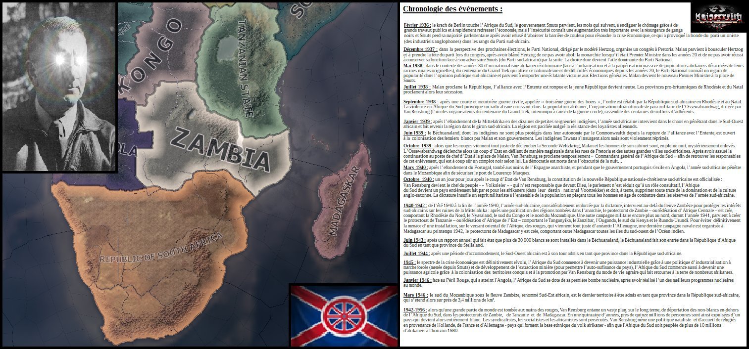 Oui voilà, vraiment je pense sincèrement que ce que j'ai marqué dans mon uchronie aurait vraiment pu se passer si le fascisme avait triomphé en Afrique du Sud dans la réalité (et il n'en était pas loin).