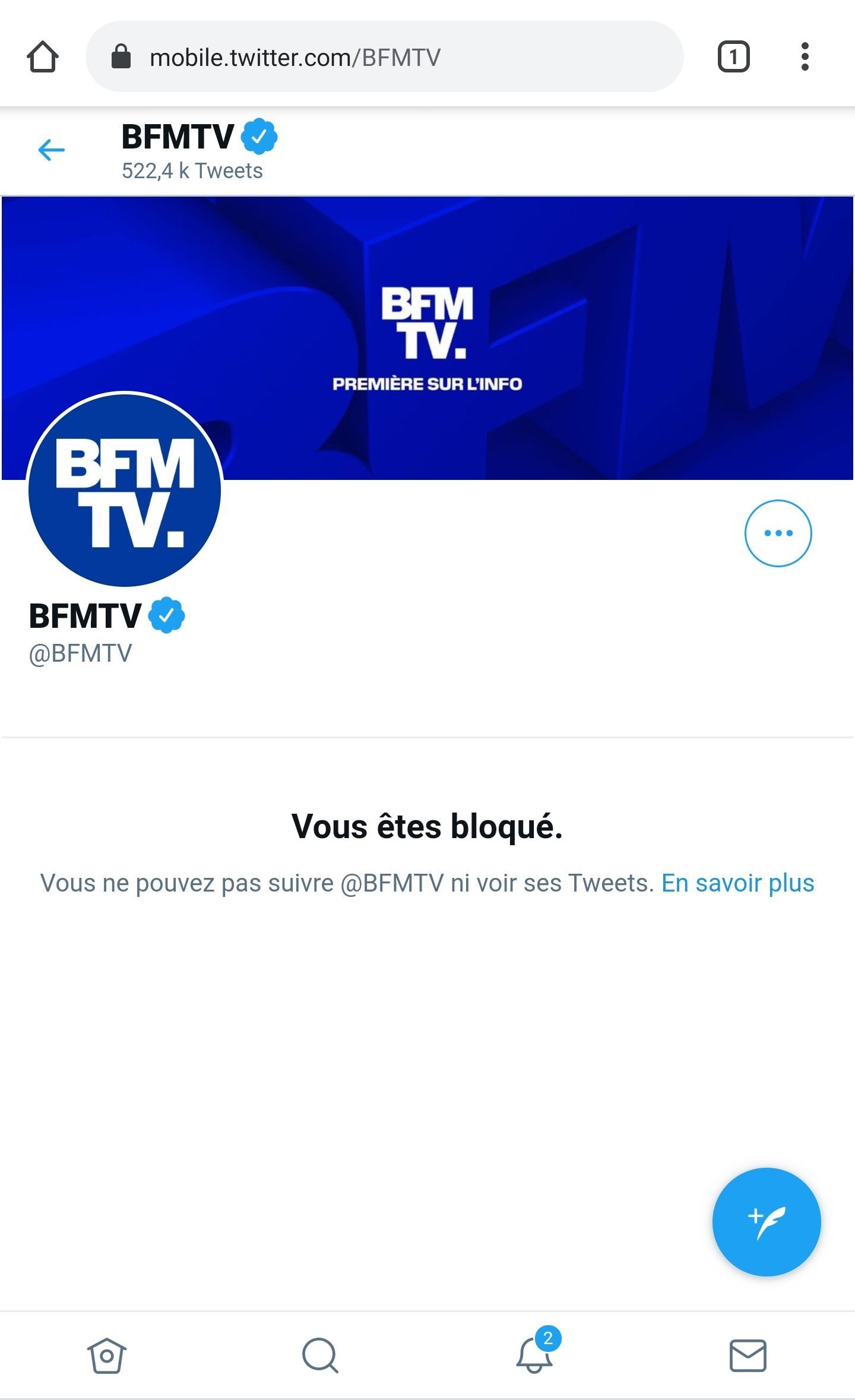 Je sais pas pourquoi j'étais même pas abonné, j'ai dû poster un truc les critiquant quelque part et bam! Bloqué depuis quand? Je sais pas