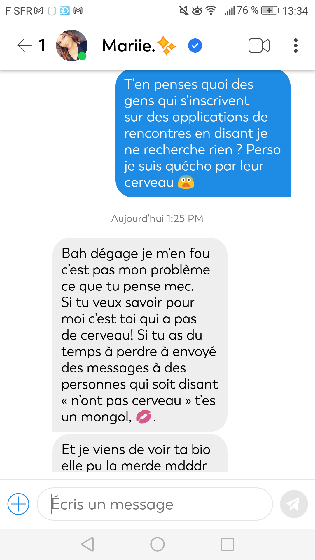 Alors qu'interieurement il est en PLS et a surement eu un coup de stress en lisant le message. Je suis sur que ton rythme cardiaque a pris 20 points quand elle t'a répondu