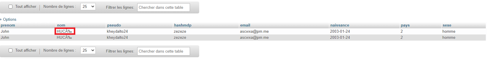 Donc si je comprends bien y a aucun moyen d'afficher mon nom en clair dans la BDD ?