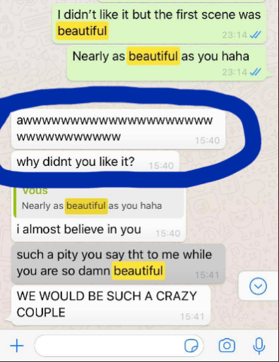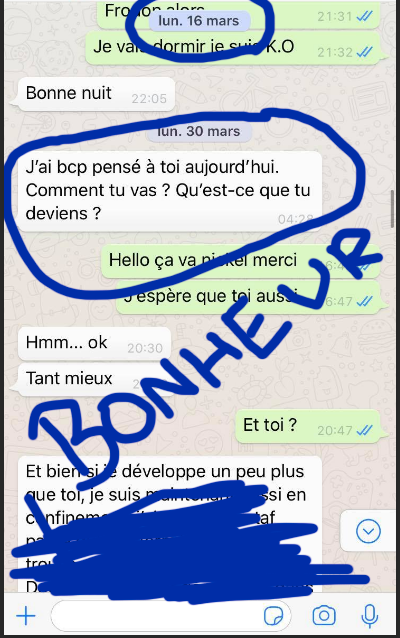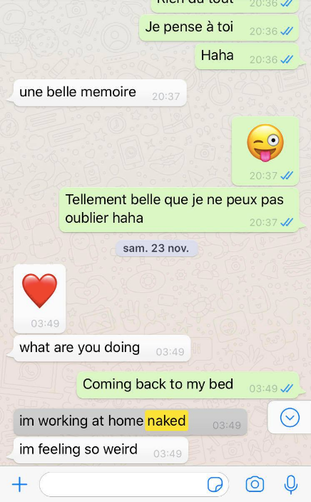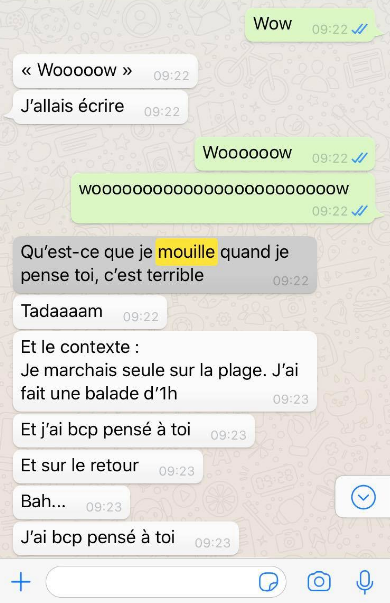 Meuf que je kiffe, à l'autre bout du monde pour un an, qui m'envoie ce genre de messages