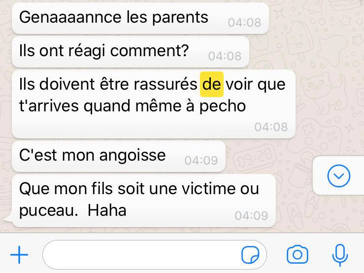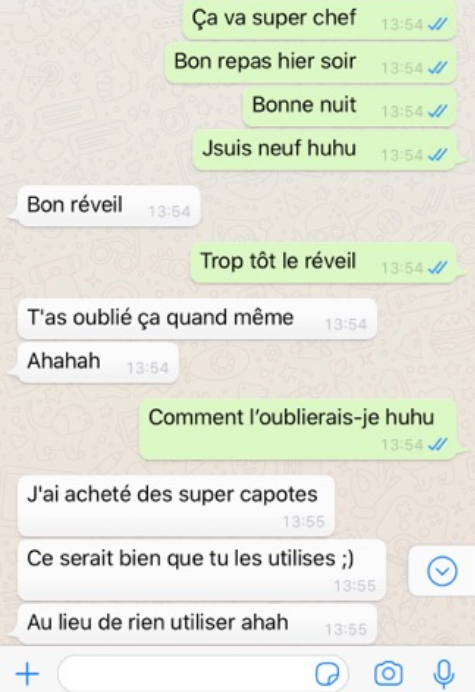 Je prends le téléphone de mon père, je prends mon téléphone, j'écris ce qui me passe par la tete pour faire une conversation et je le screene c'est bon, c'est fait