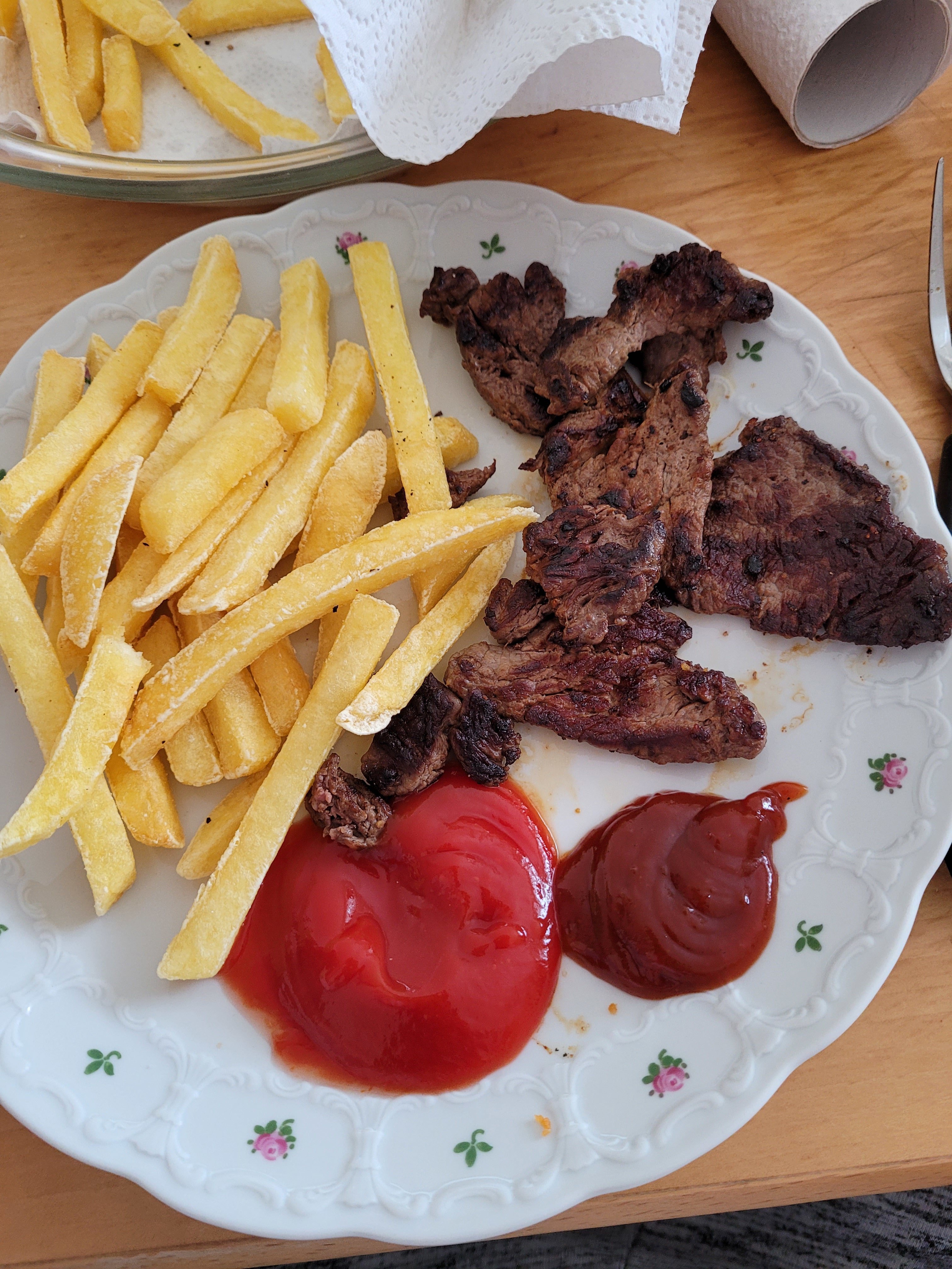 fritte MC Cain, Boeuf Grillé BIEN CUIT (halal), et haricots en accompagnants (à coté)