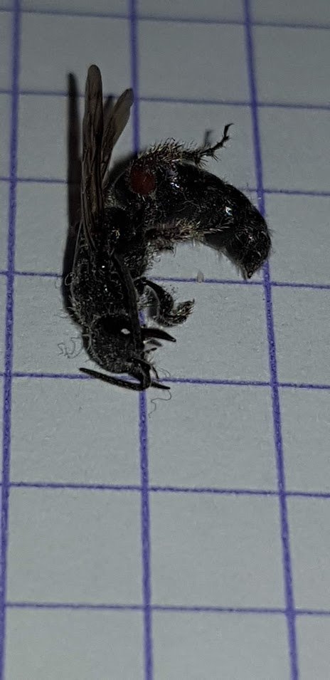 Peut-être une abeille charpentière mais on voit assez mal les détails, ça fait un gros paquet sombre, ahi