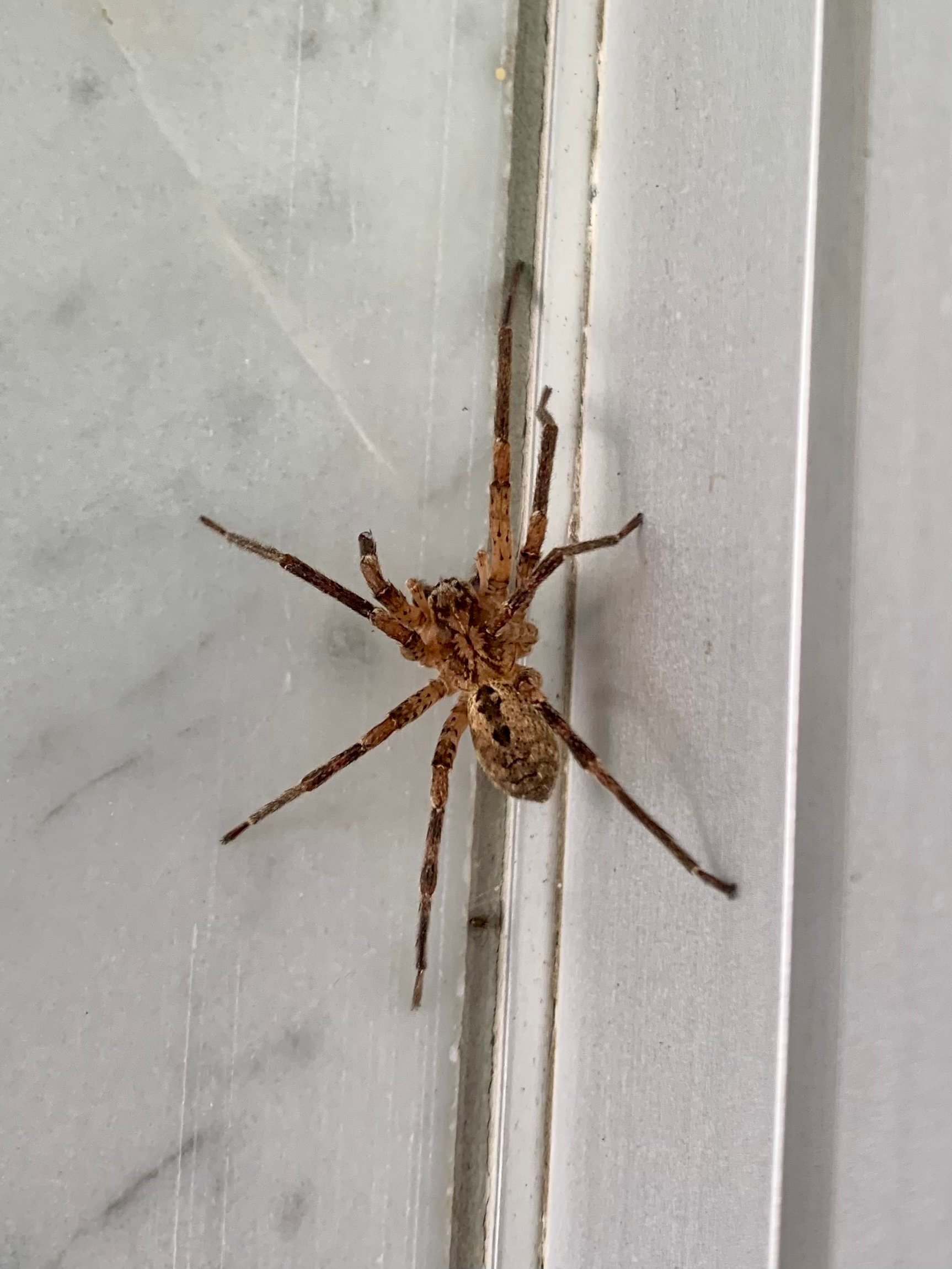 En la voyant je suis directement partie du principe que j’avais affaire à une tégénaire ( comme une tégénaire noire ) sauf qu’en regardant j’ai remarqué qu’il n’y avait pas le fameux motif sur le cephalothorax. J’ai pensé à la sparrassidae Olios argelasius mais je ne me souviens pas avoir vu de fovéa sur l’araignée ( petit trou au centre du cephalothorax ). Si quelqu’un a une autre hypothèse ou une explication ce serait super