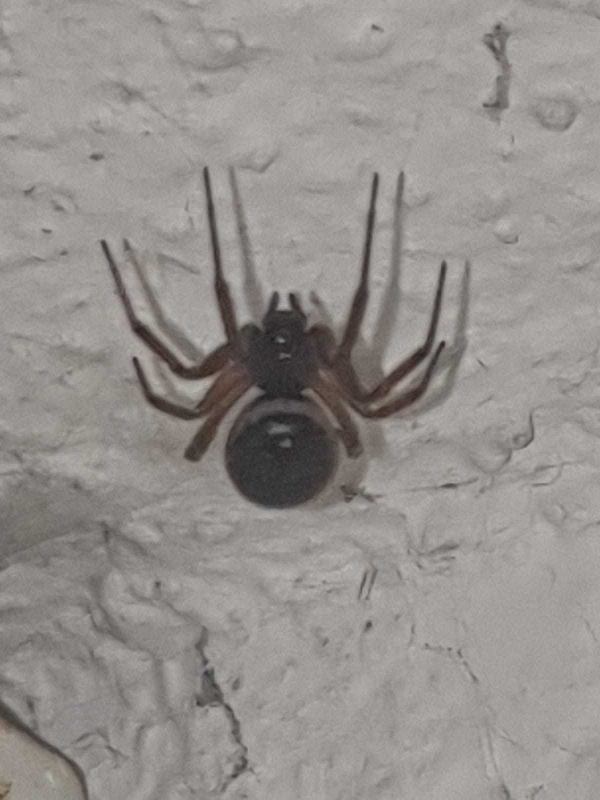 Niveau description : elle est toute noire, un gros abdomen et doit faire dans les 4 cm de long. Elle a vraiment la morphologie d'une veuve noire donc doit faire parti de cette catégorie d'araignée.
