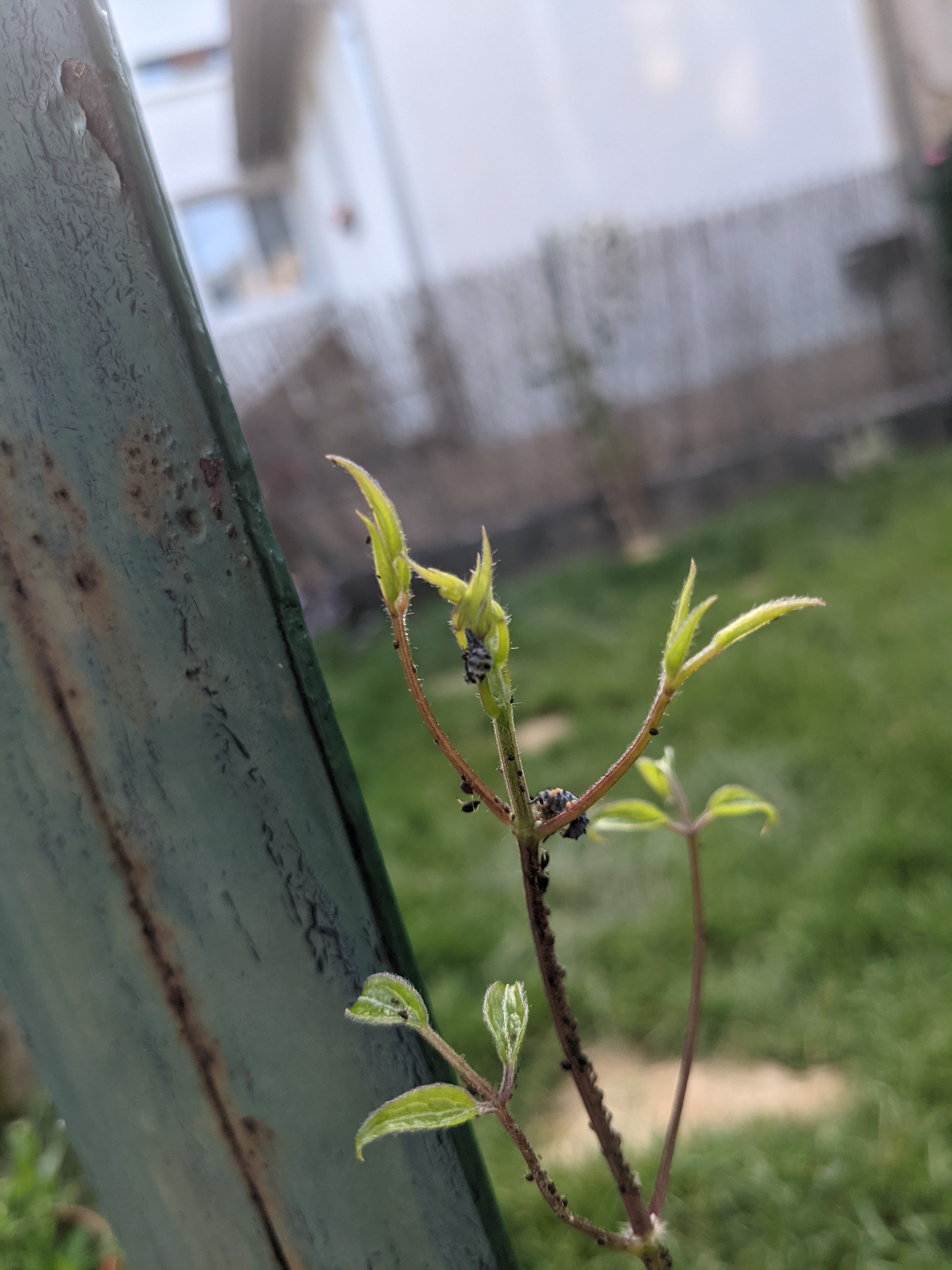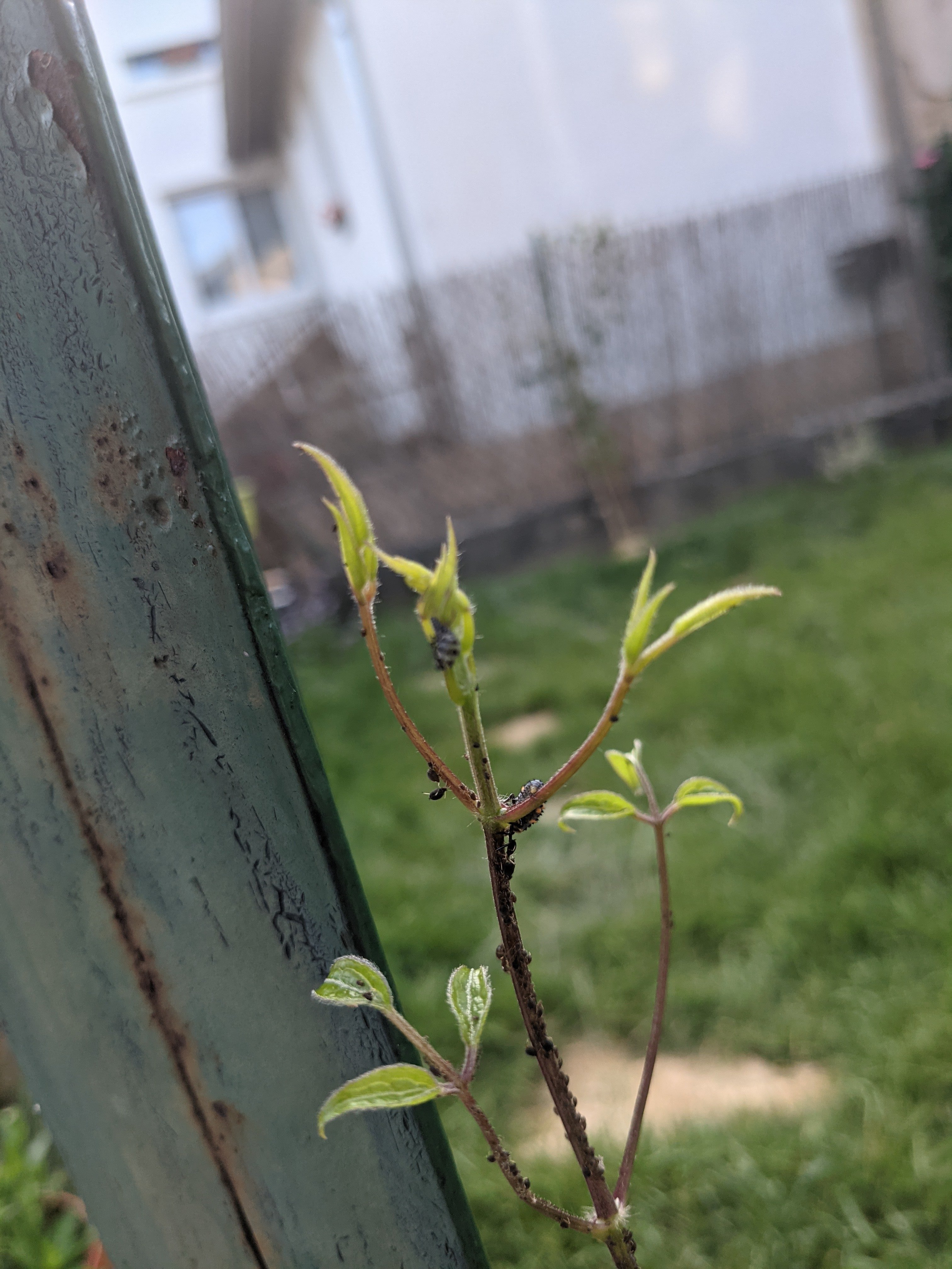 La je pose une colle, un insecte jaune/noire qui a mué sur une plante de mon jardin.