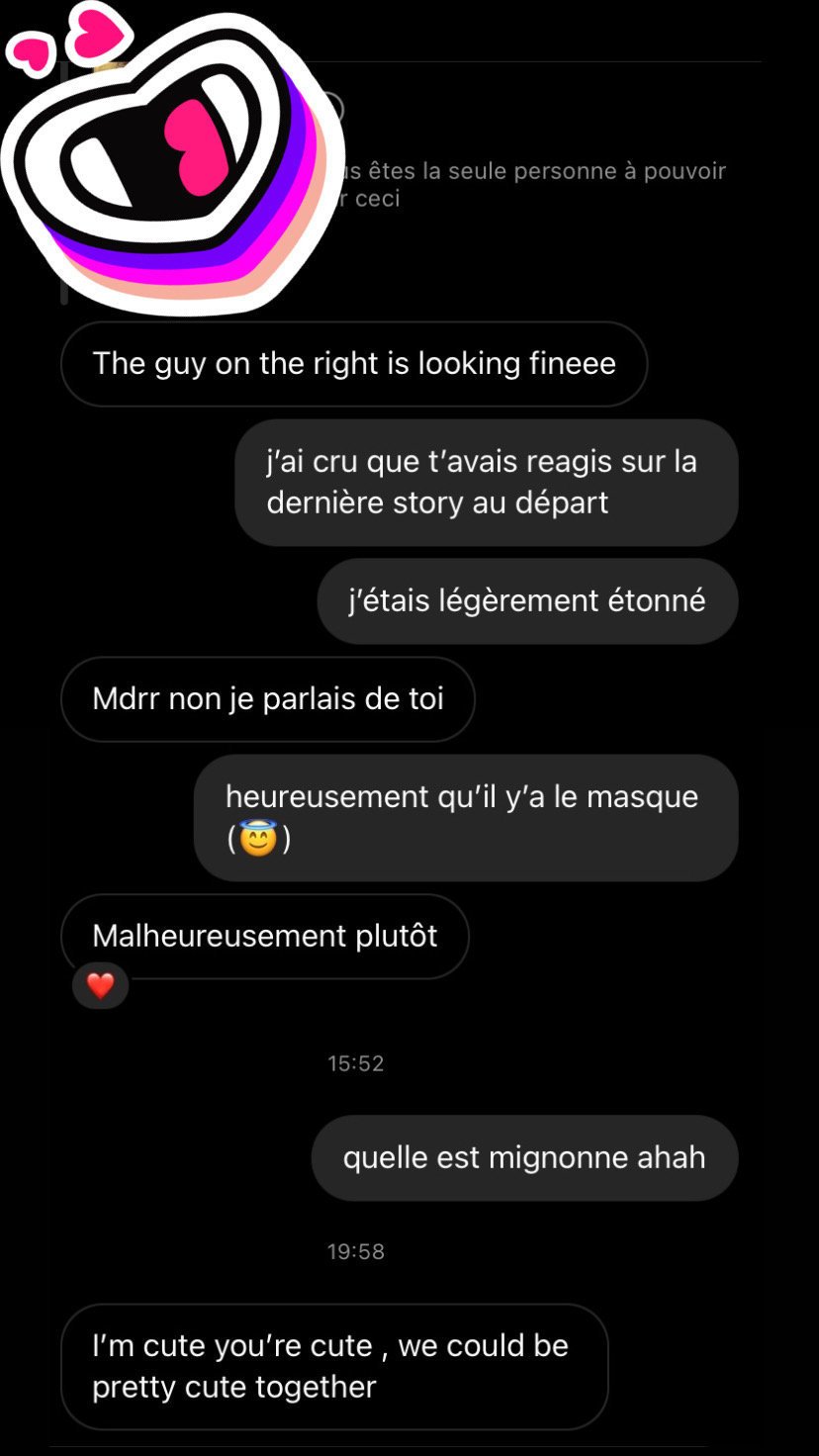 "tu es mignon je suis mignonne, on pourrait être mignons tous les deux"Réfléchissez avant d'ouvrir votre gueule les Célestin