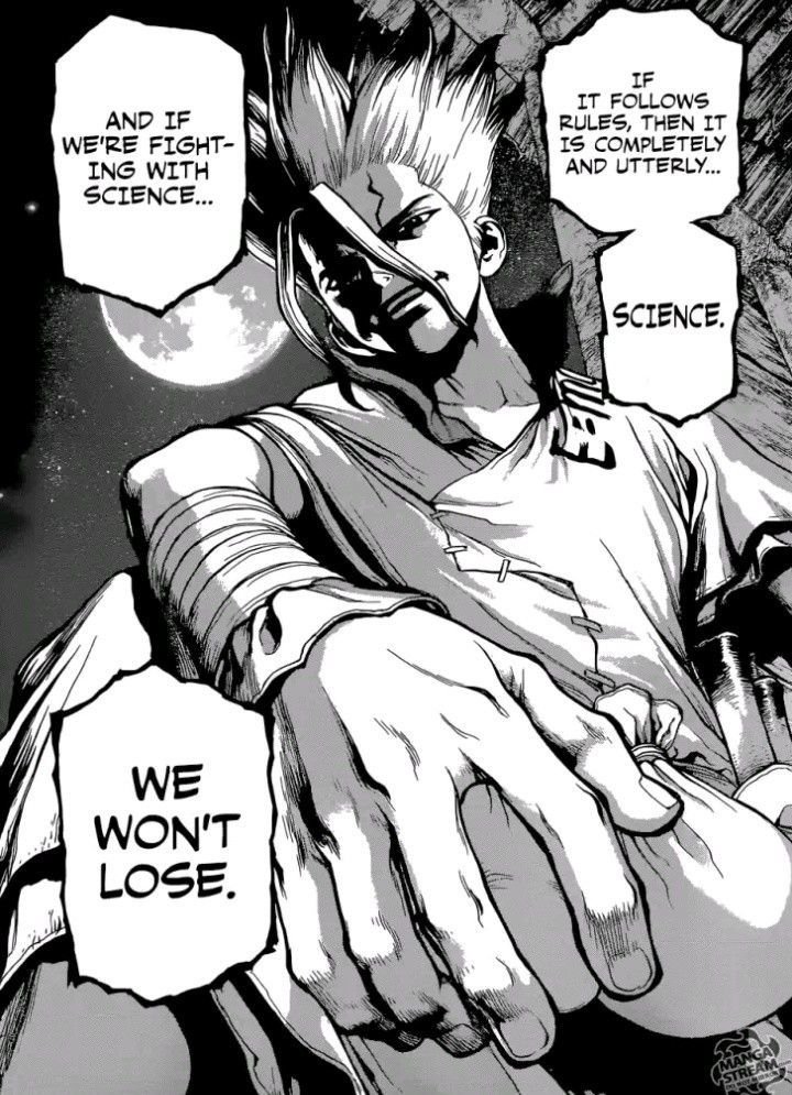 Ca se laisse regarder, à noter que la chimie qu'il explique est vraiment utilisée industriellement, mais tout est très simplifié parce que c'est quasi impossible de refaire ce que Senku fait avec sa bite et son couteau