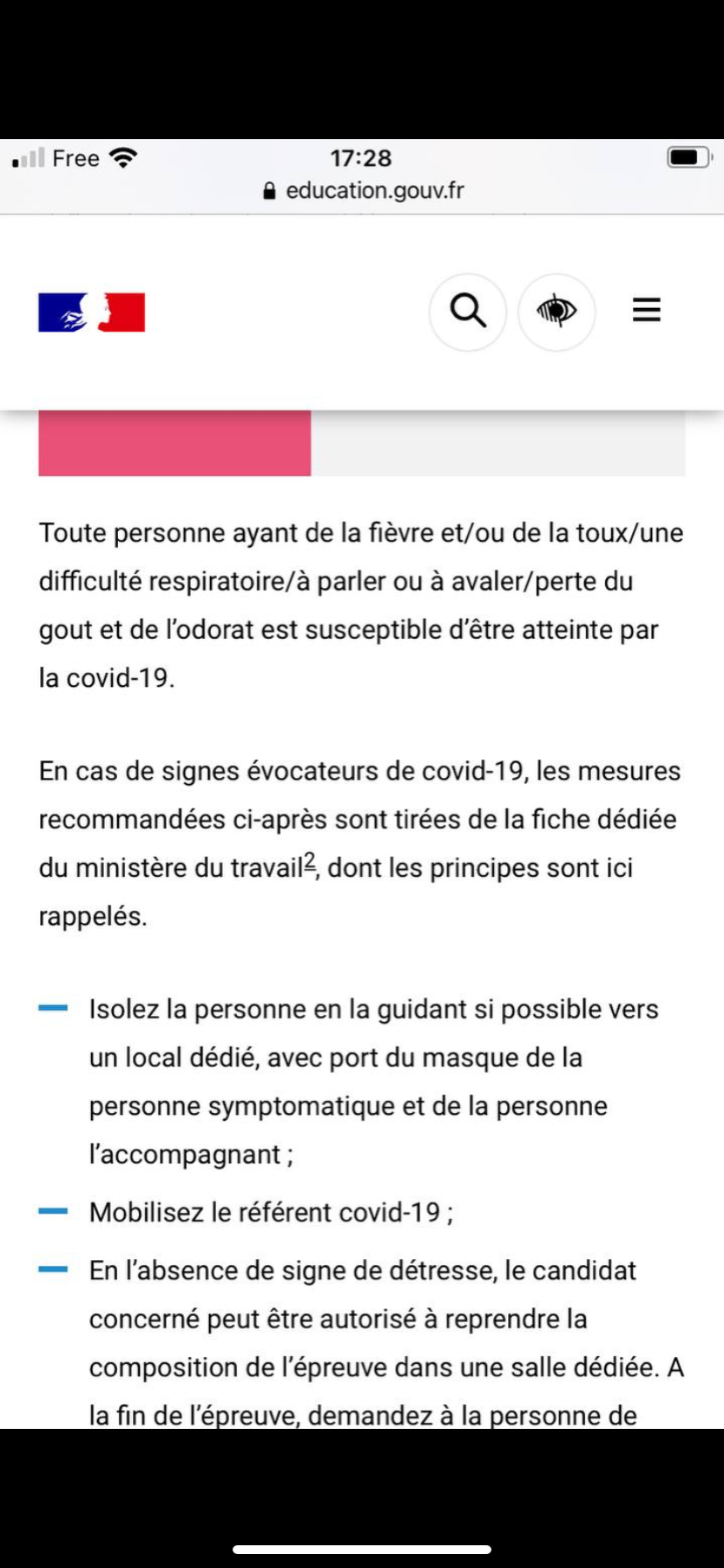 "En l’absence de signe de détresse, le candidat concerné peut être autorisé à reprendre la composition de l’épreuve dans une salle dédiée"
