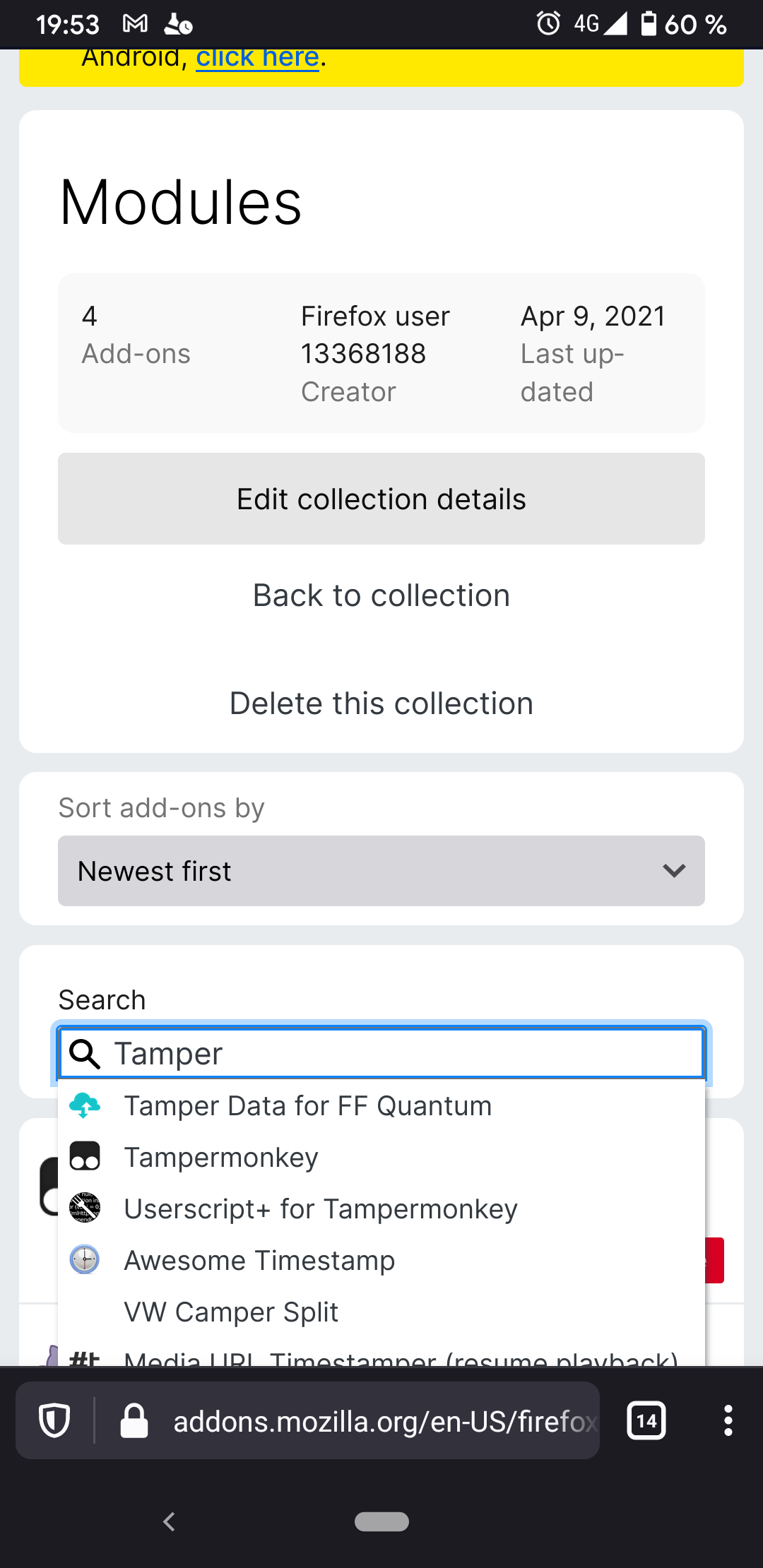 Voilà ça marche J'ai essayé avec violentmonkey ça marche pas par contre J'ai entendu qu'apparemment sur respawnirc ça marche à vous de voir, mais perso j'aime bien Firefox mobile et vous pouvez télécharger grossi modo (sur la version Nightly uniquement) tous les modules trouvables sur PC